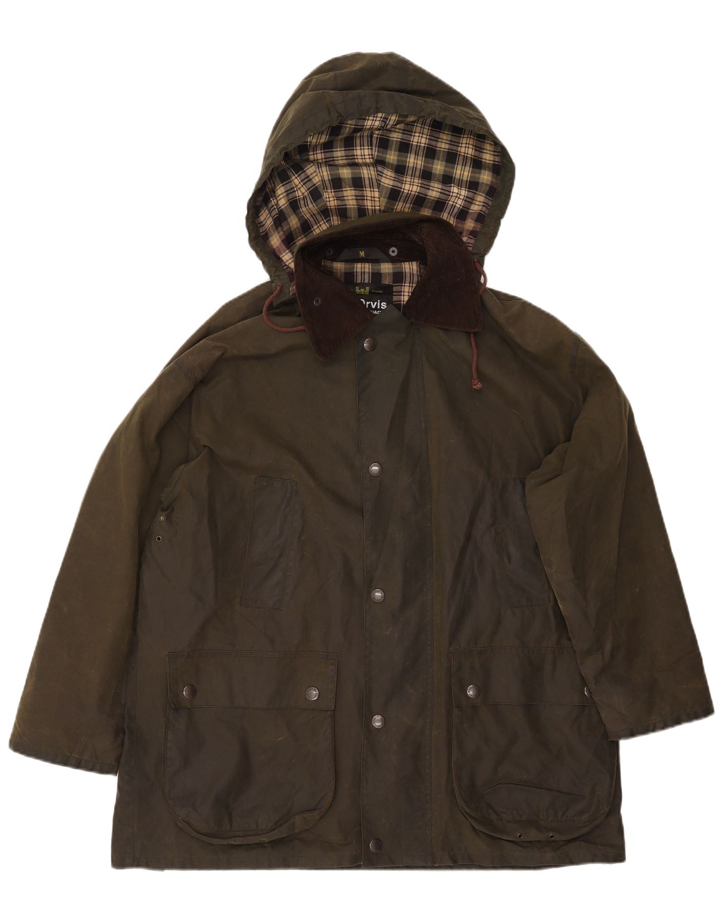 MC ORVIS Giacca cerata da uomo con vestibilità ampia con cappuccio UK 38 Cotone kaki medio
