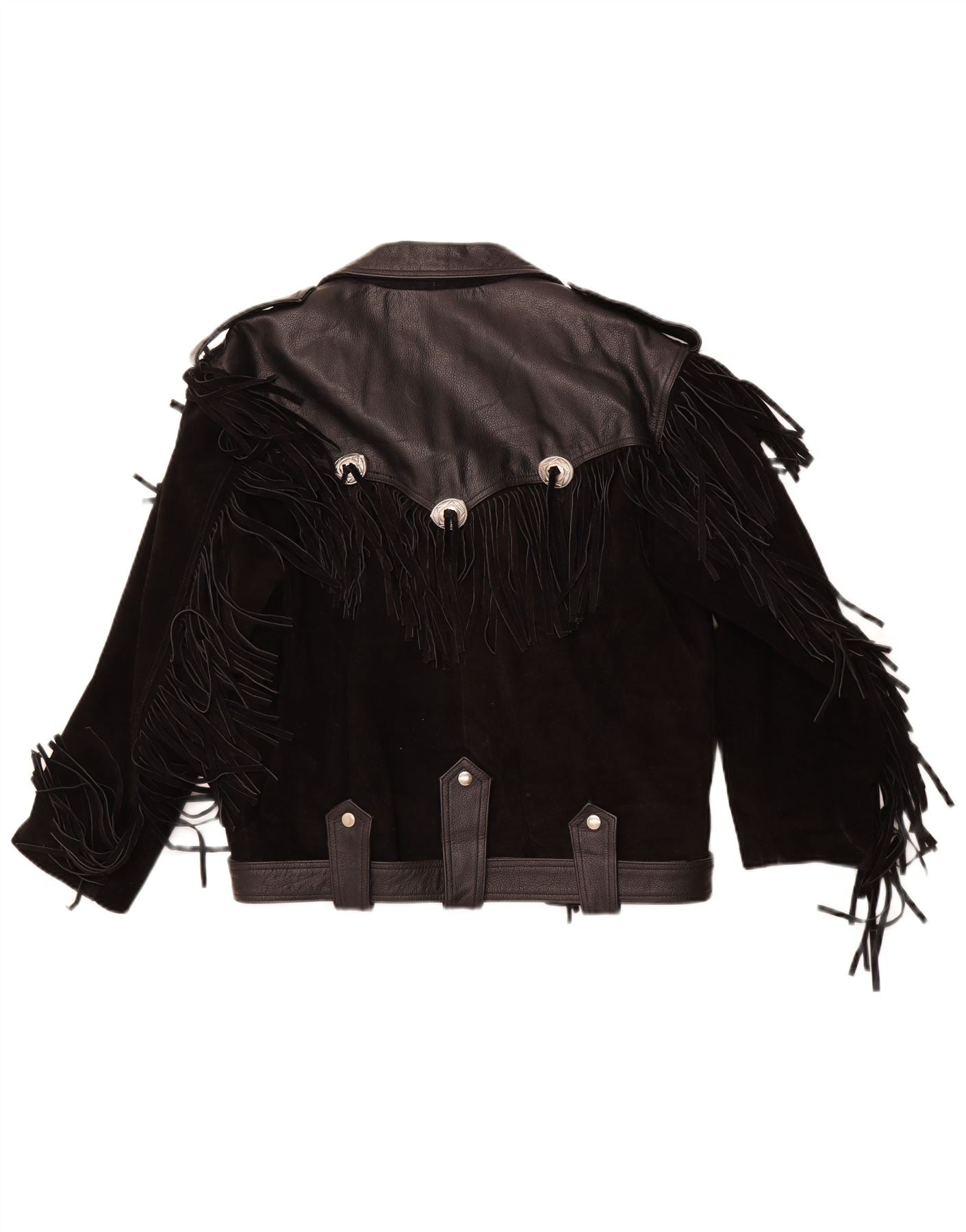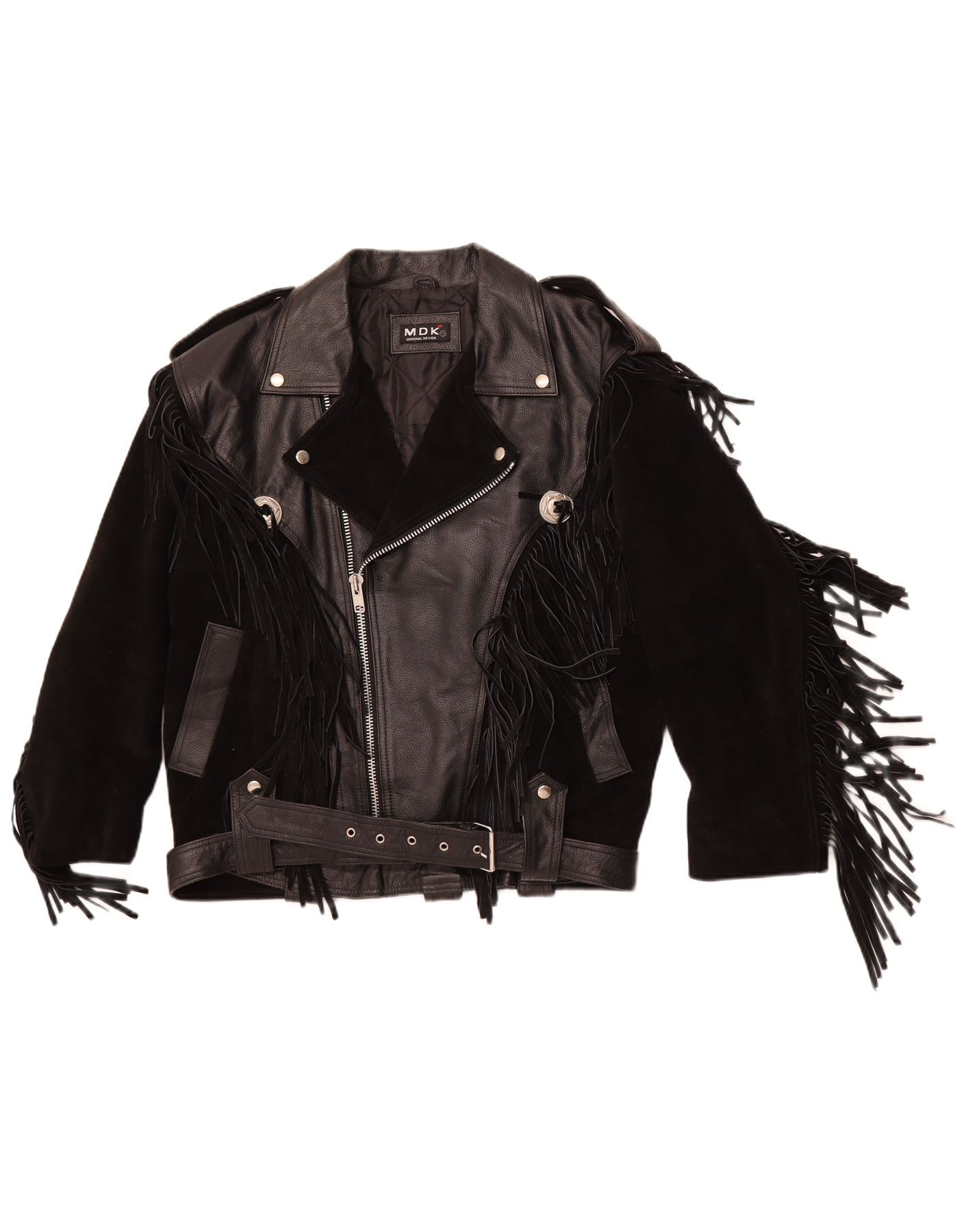 Giacca da motociclista in pelle dal taglio ampio western da donna MDK UK 14 media nera