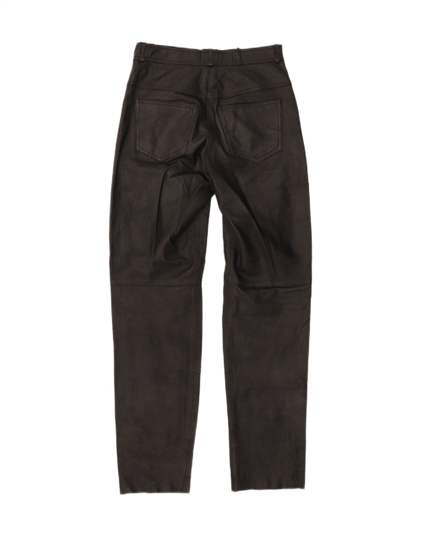 - AI Description: These Front Line men’s trousers are crafted from smooth black leather with a biker style. Their regular fit ensures comfort and ease. A button closure fastens the trousers securely. Practical pockets and a full lining enhance functionality. The leaning only washing instructions help maintain the quality of this garment.
