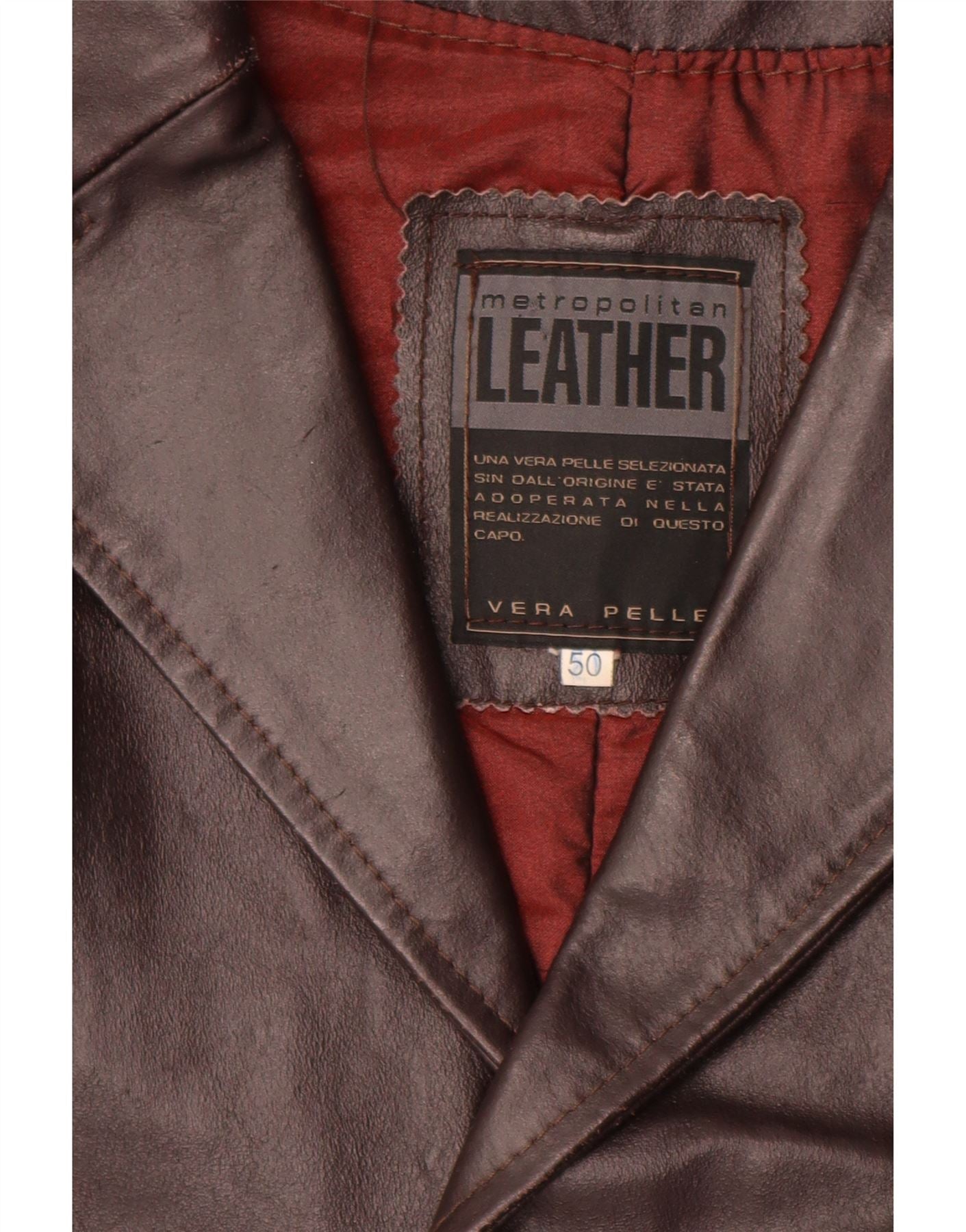 METROPOLITAN Cappotto in Pelle da Uomo IT 50 Large in Pelle Marrone