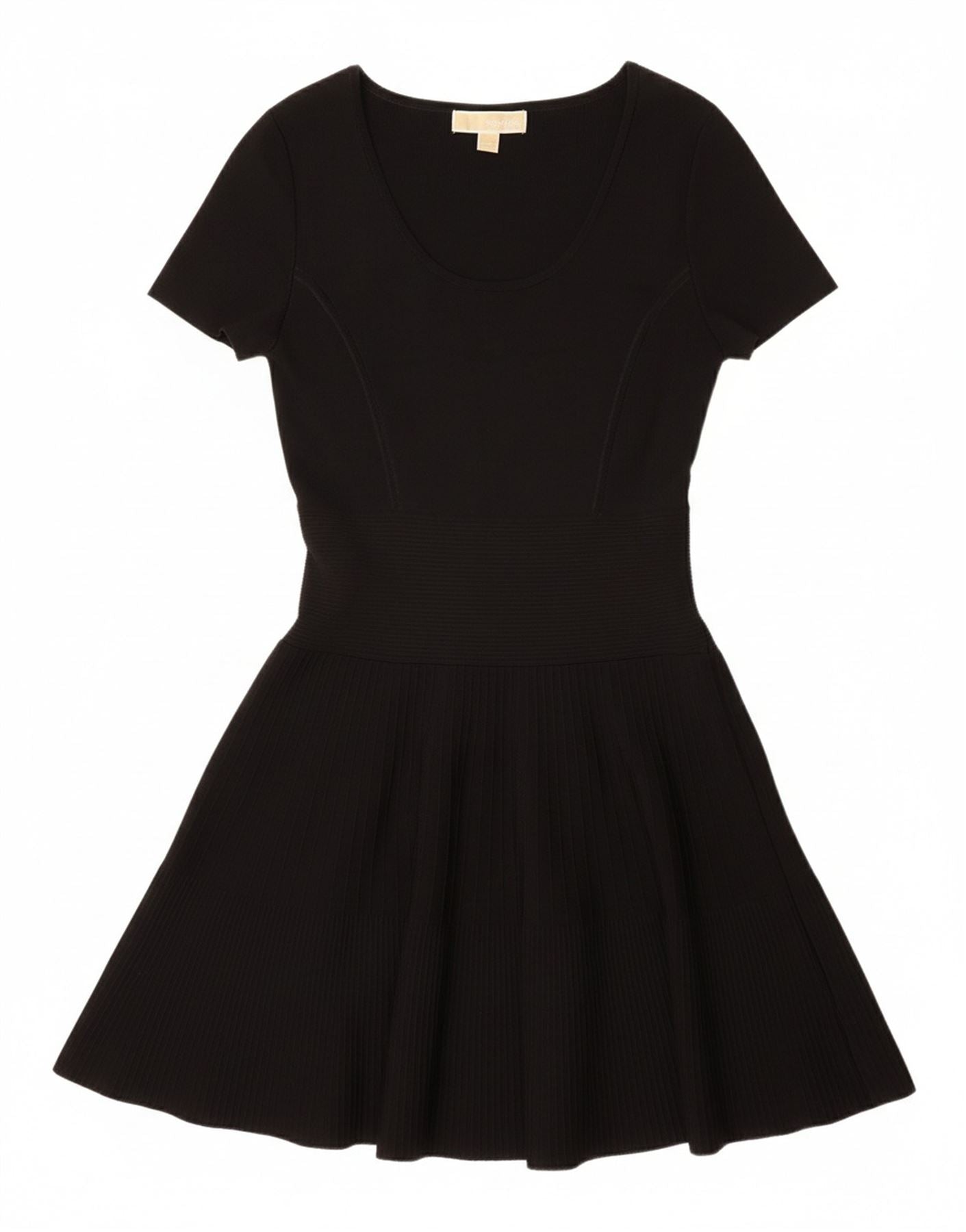 - Descrizione dell'IA: Questo abito scampanato da donna Michael Kors è sapientemente realizzato in morbido misto rayon lavorato a maglia nero. Il tessuto offre una comoda elasticità per facilitare i movimenti. Presenta un classico scollo rotondo e maniche corte. Questo vestito pullover garantisce un'usura senza sforzo. La sua vestibilità regolare crea un drappeggio rilassato e lusinghiero, completato da discreti dettagli del logo.