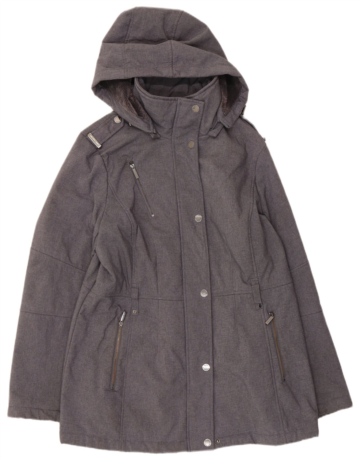 MICHAEL KORS Womens Hooded Military Jacket UK 16 Large Grey Polyester