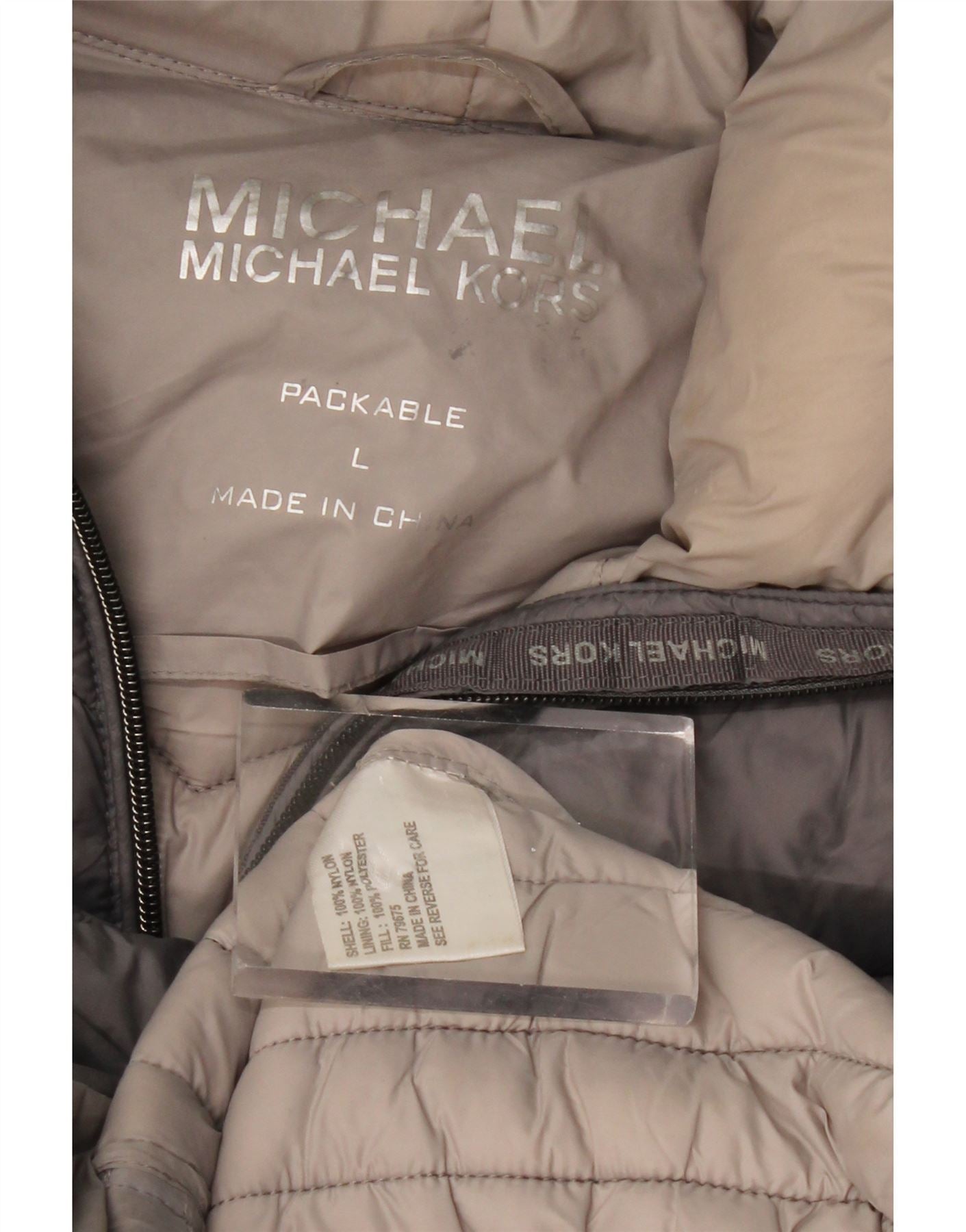 MICHAEL KORS Cappotto imbottito con cappuccio da donna UK 16 Grande nylon grigio