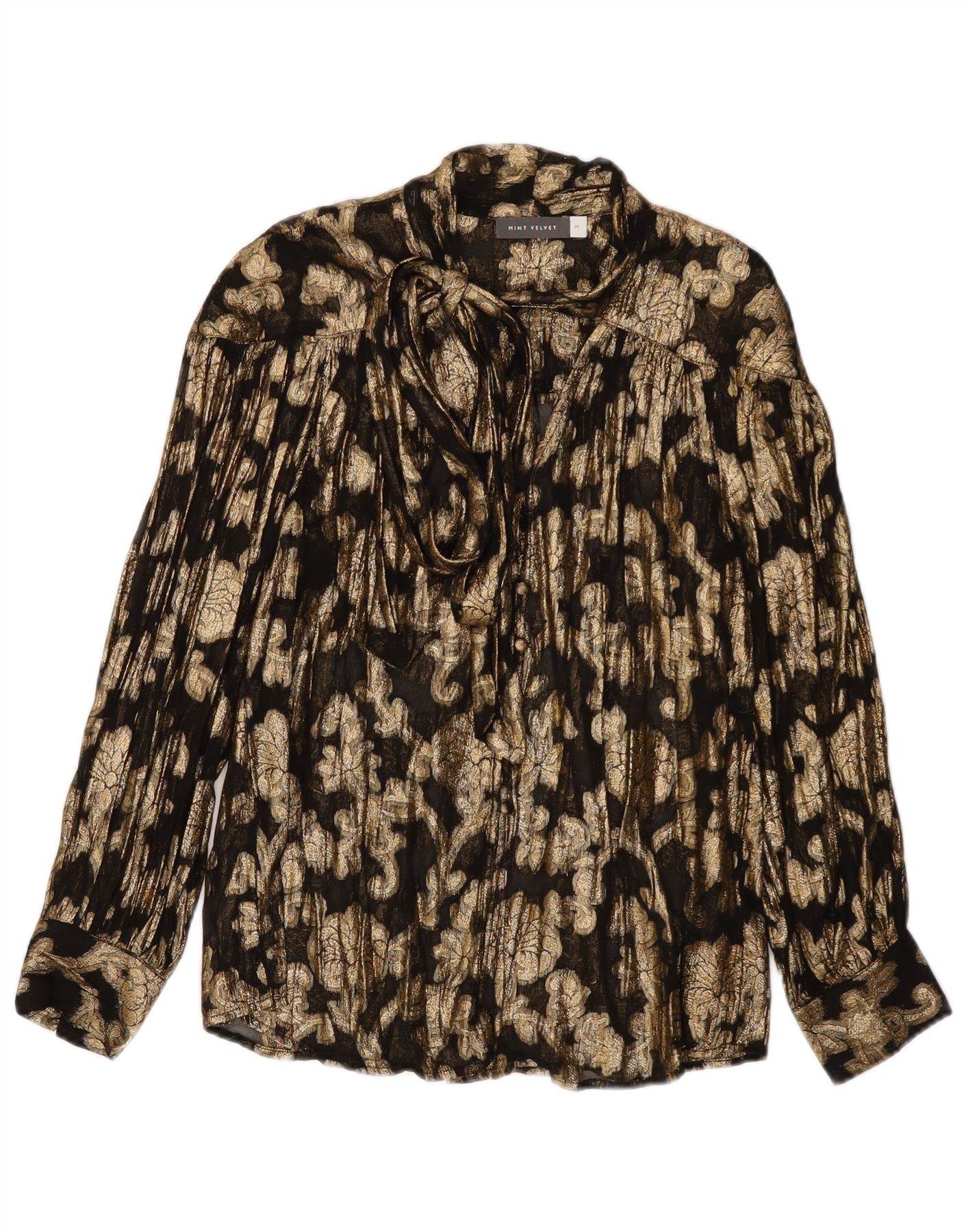 MINT VELVET Camicetta da donna con cravatta sul davanti UK 14 Viscosa floreale oro medio