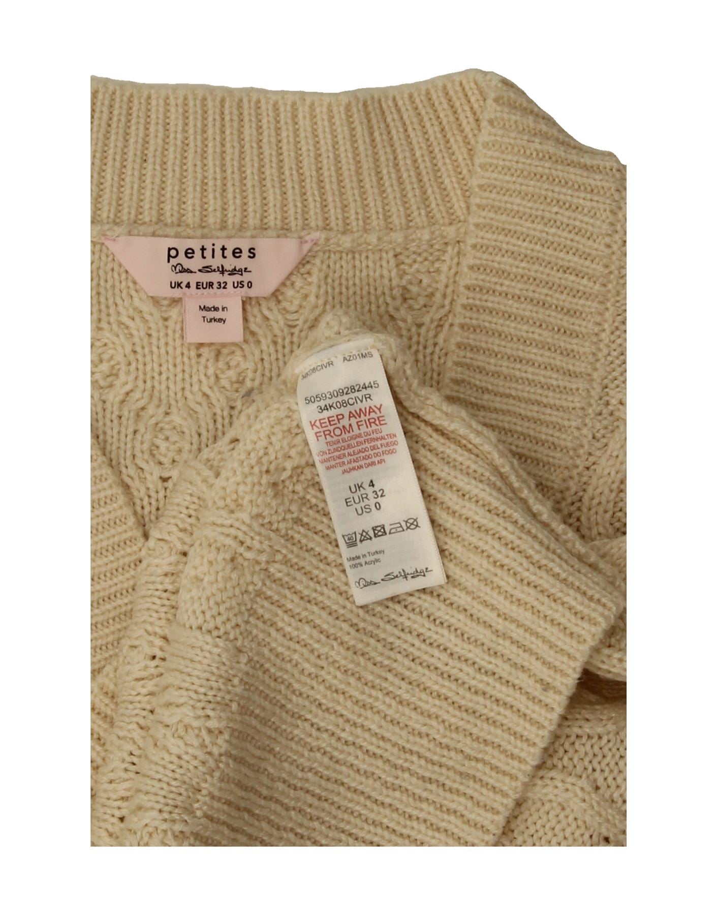MISS SELFRIDGE Womens Crop Cardigan Sweater UK 4 XS Beige Argyle/Diamond
