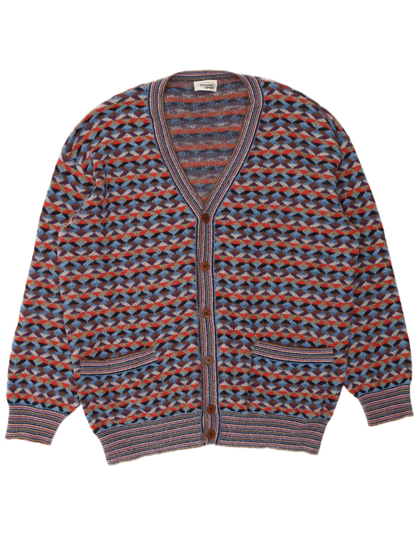 MISSONI Maglione Cardigan Uomo IT 54 XL Designer geometrico multicolore