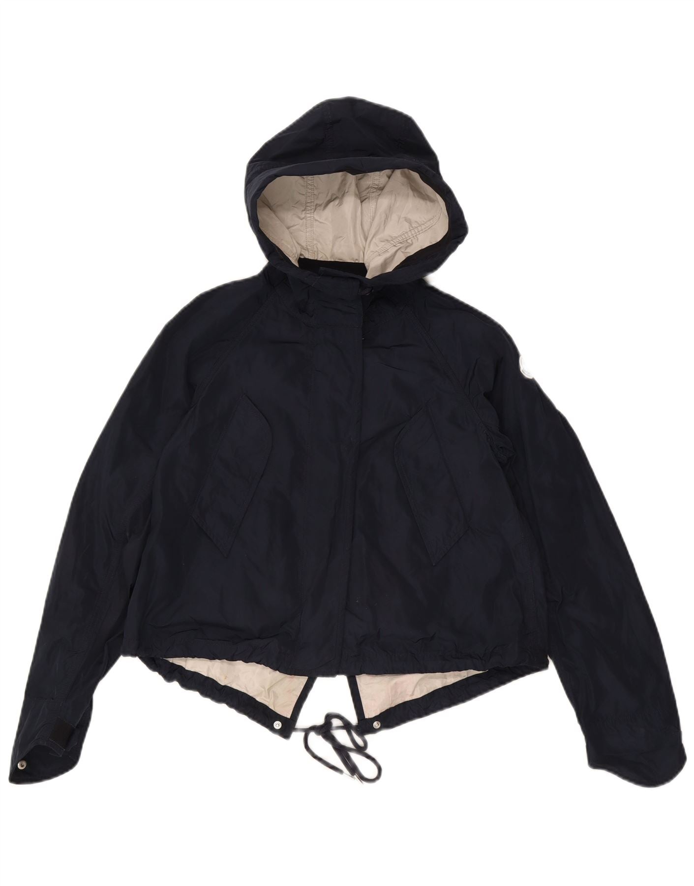 MONCLER Womens Hooded Rain Jacket Size 2 Medium Navy Blue Polyester