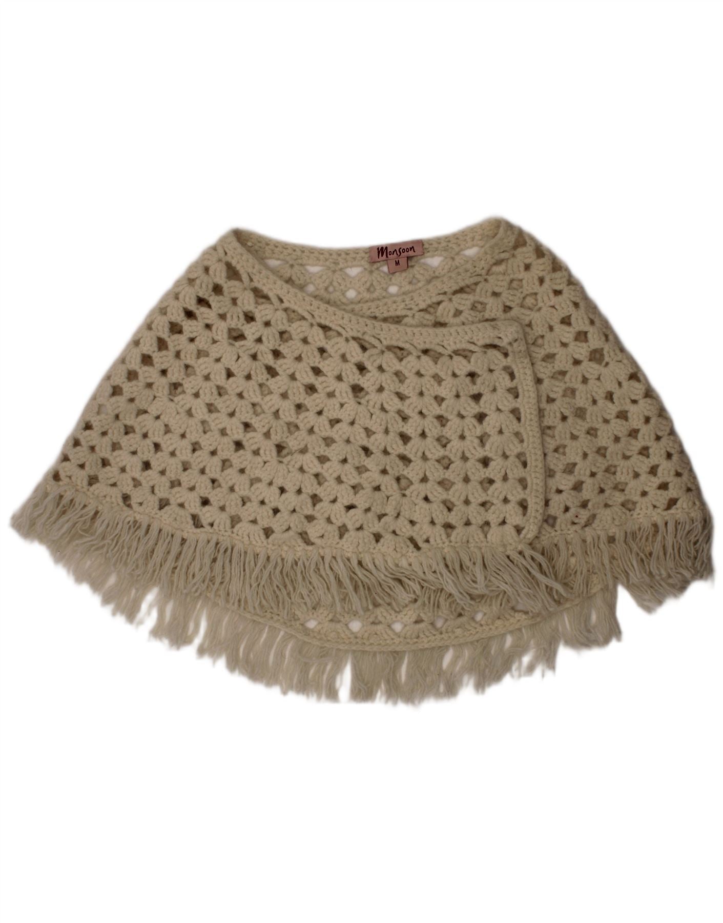 MONSOON Girls Crochet Poncho Shawl 12-13 Years Medium Off White Bohemian