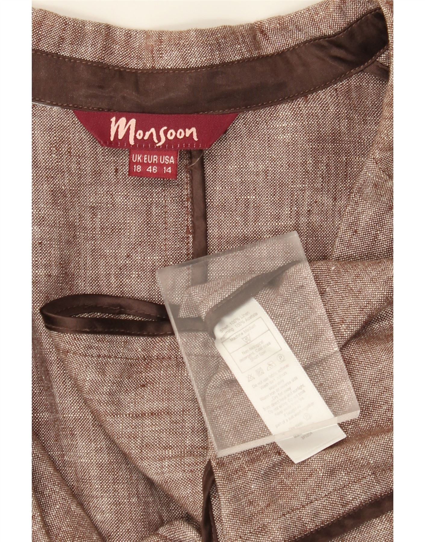 MONSOON Giacca blazer da donna a 2 bottoni UK 18 XL Lino marrone