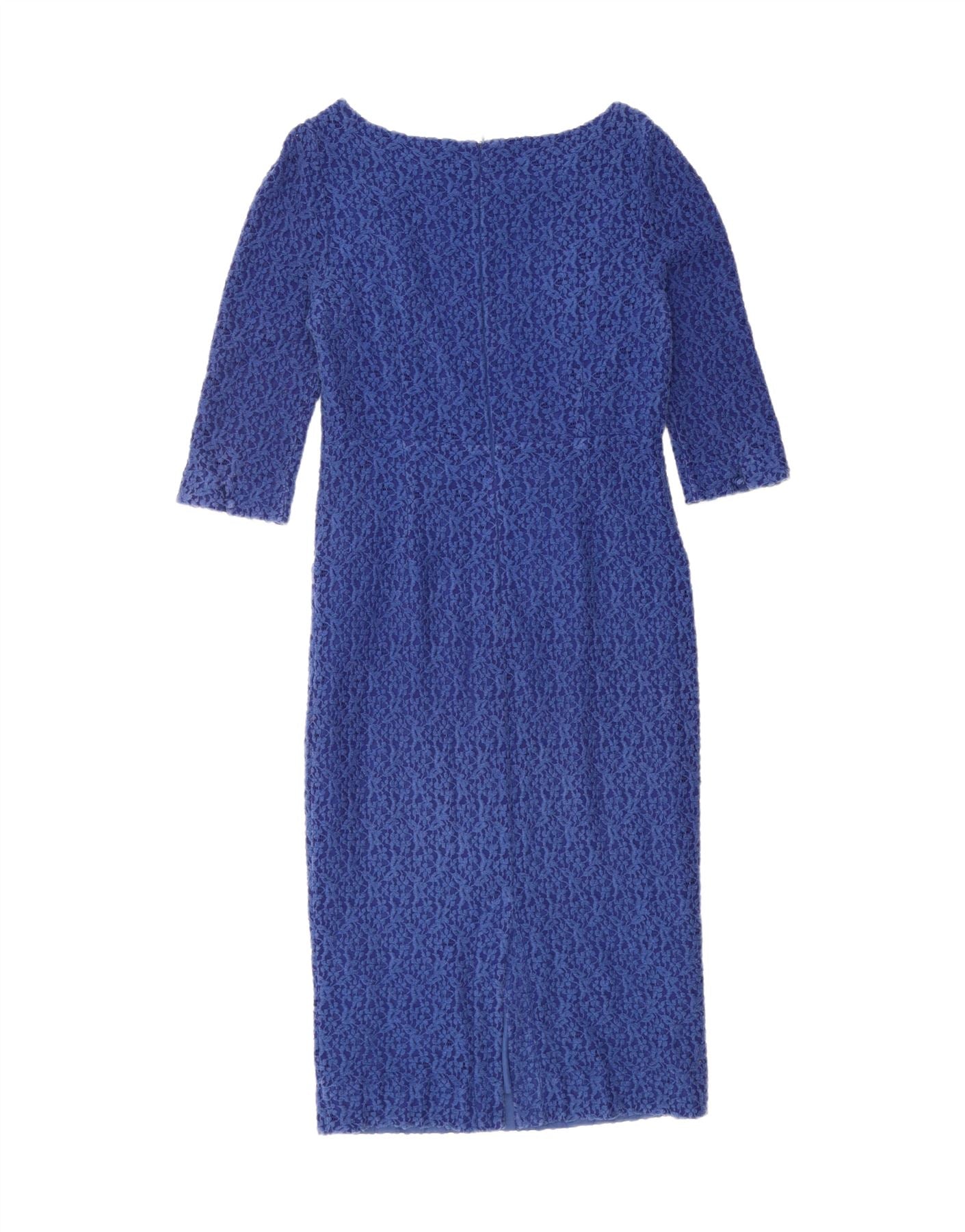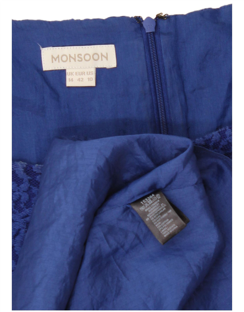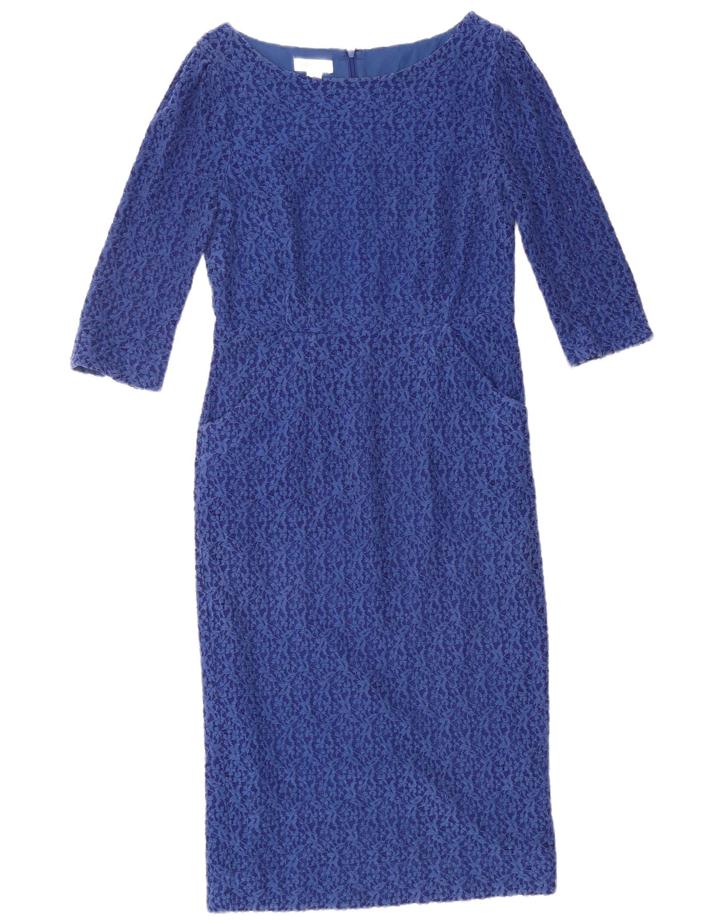 MONSOON Womens 3/4 Sleeve Sheath Dress UK 14 Medium Blue Floral Cotton