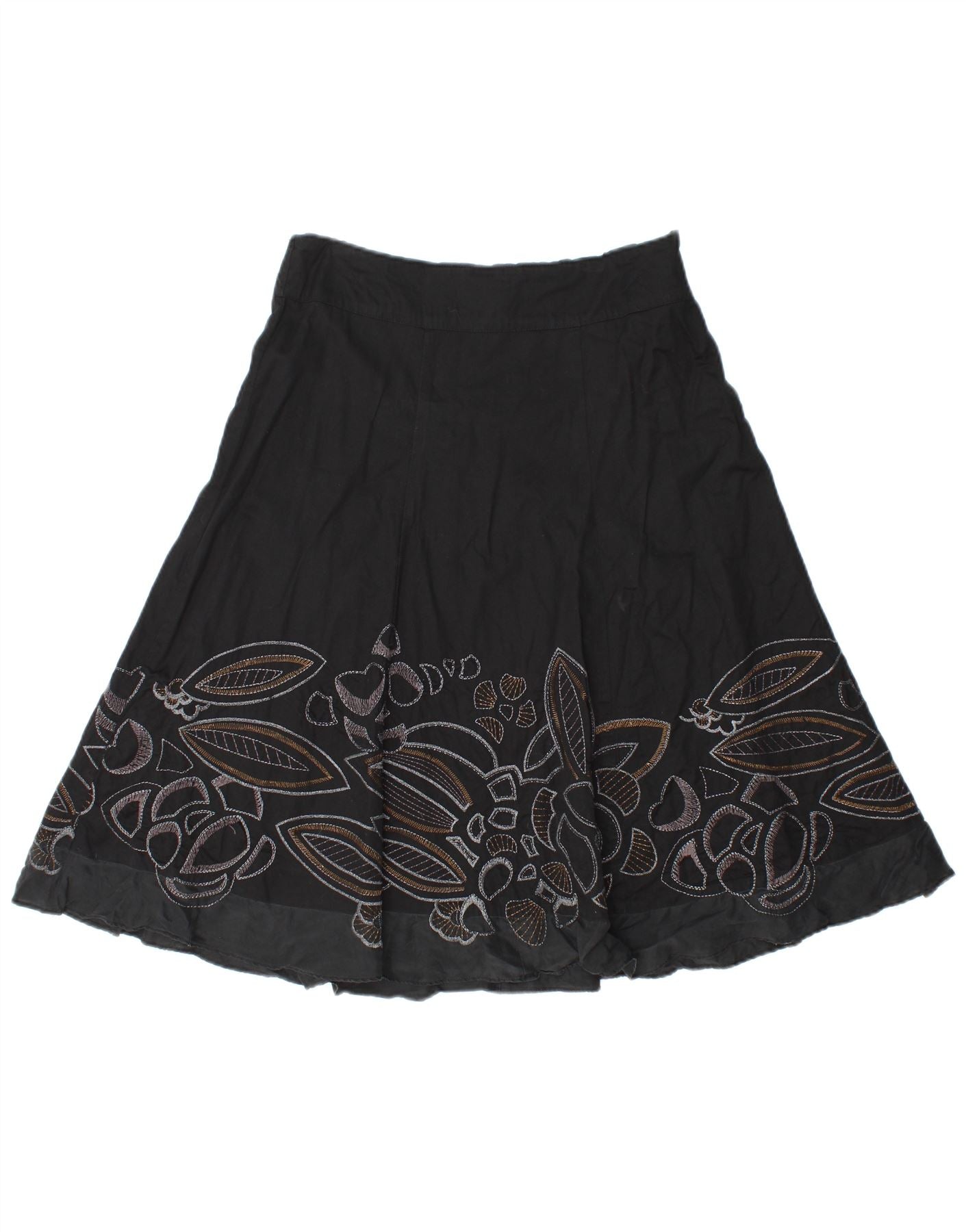 MONSOON Gonna a trapezio da donna con motivo astratto UK 10 piccola W30 cotone nero