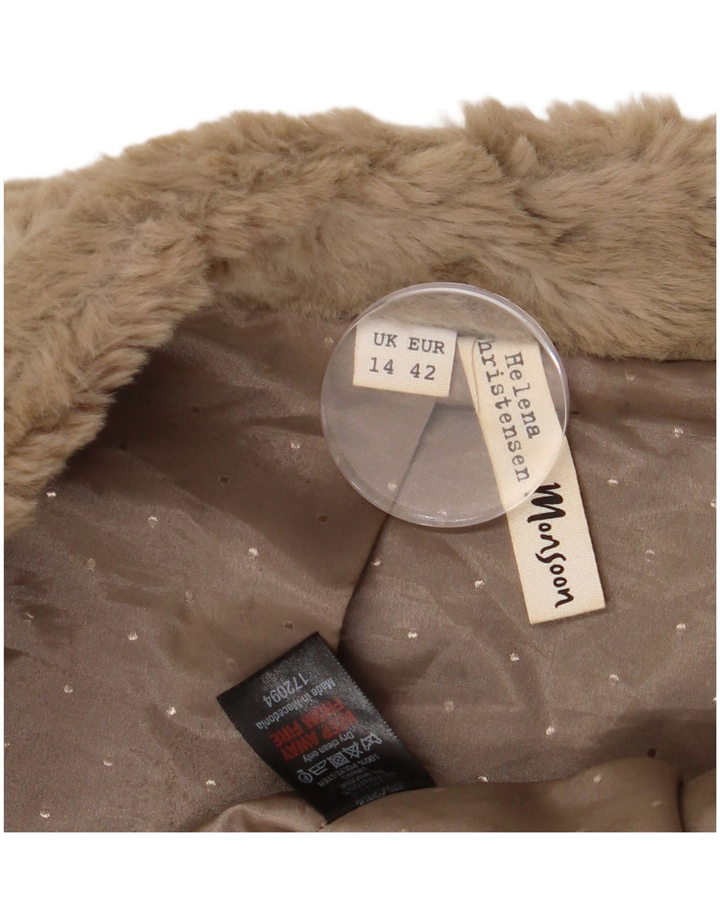 Gilet da donna in pelliccia sintetica Monsoon UK 14 grande poliestere floreale marrone