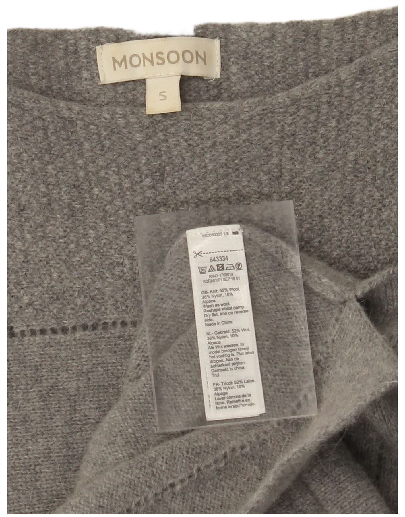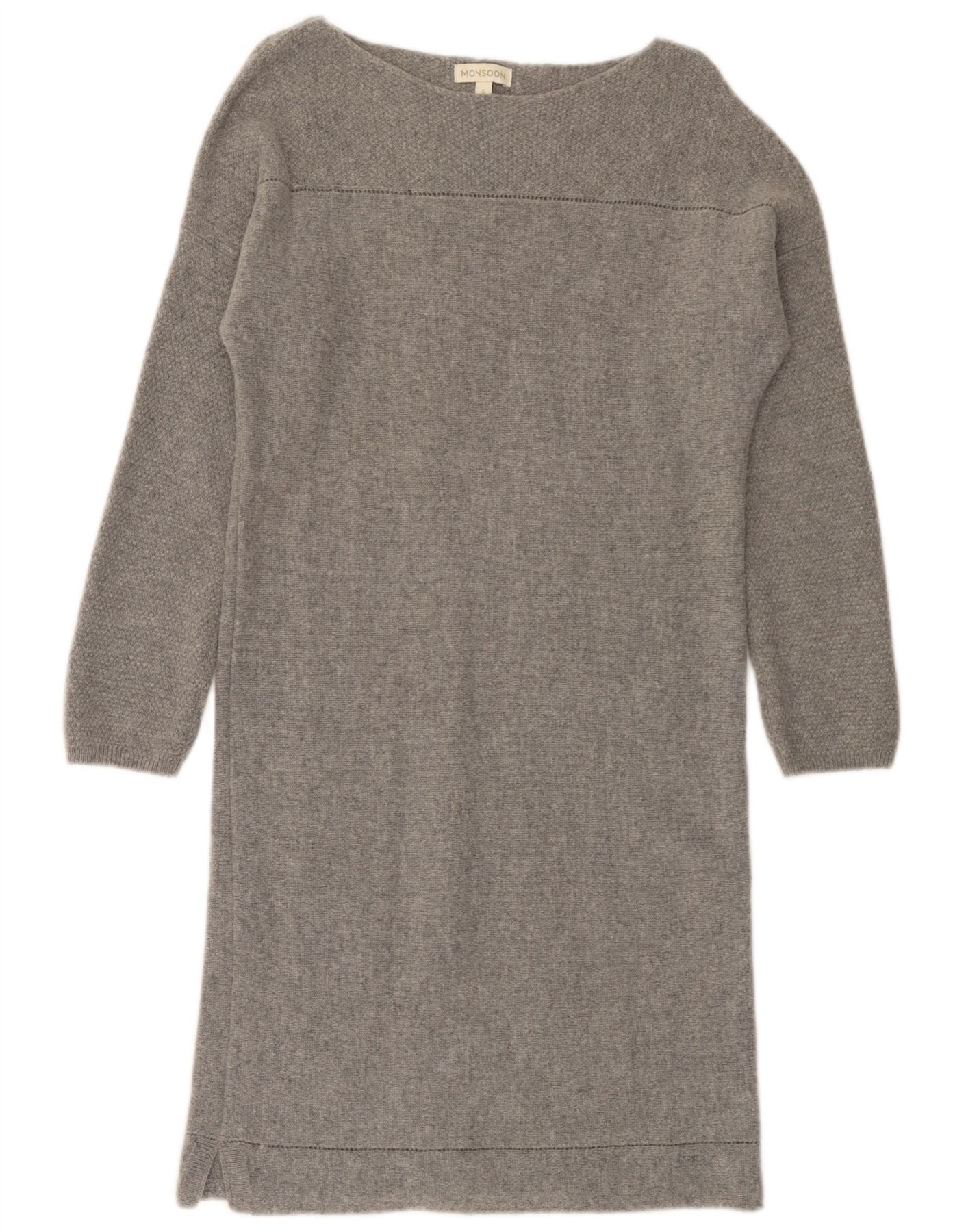 MONSOON Abito maglione a maniche lunghe da donna UK 10 Piccolo in lana grigia