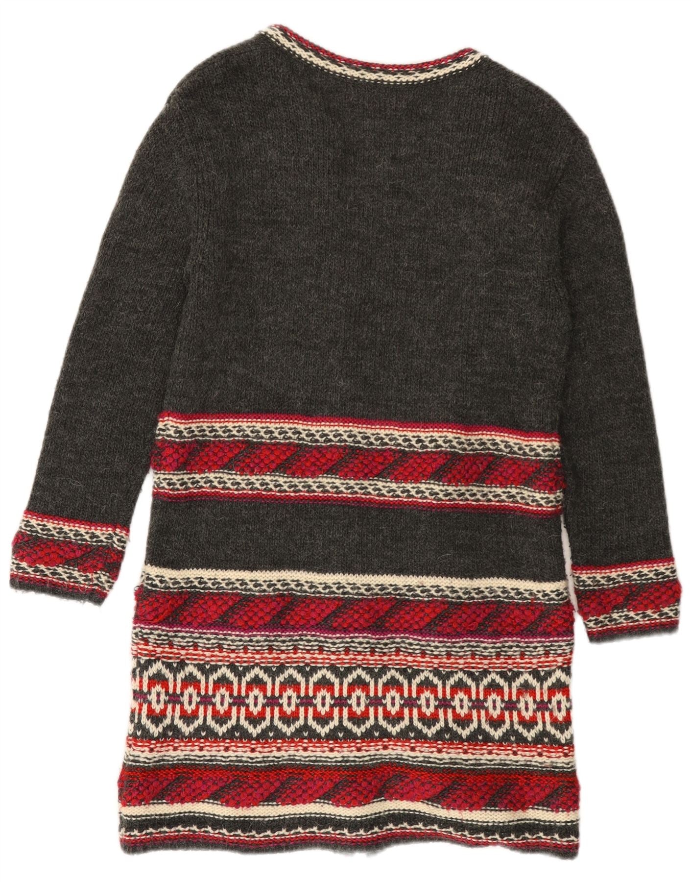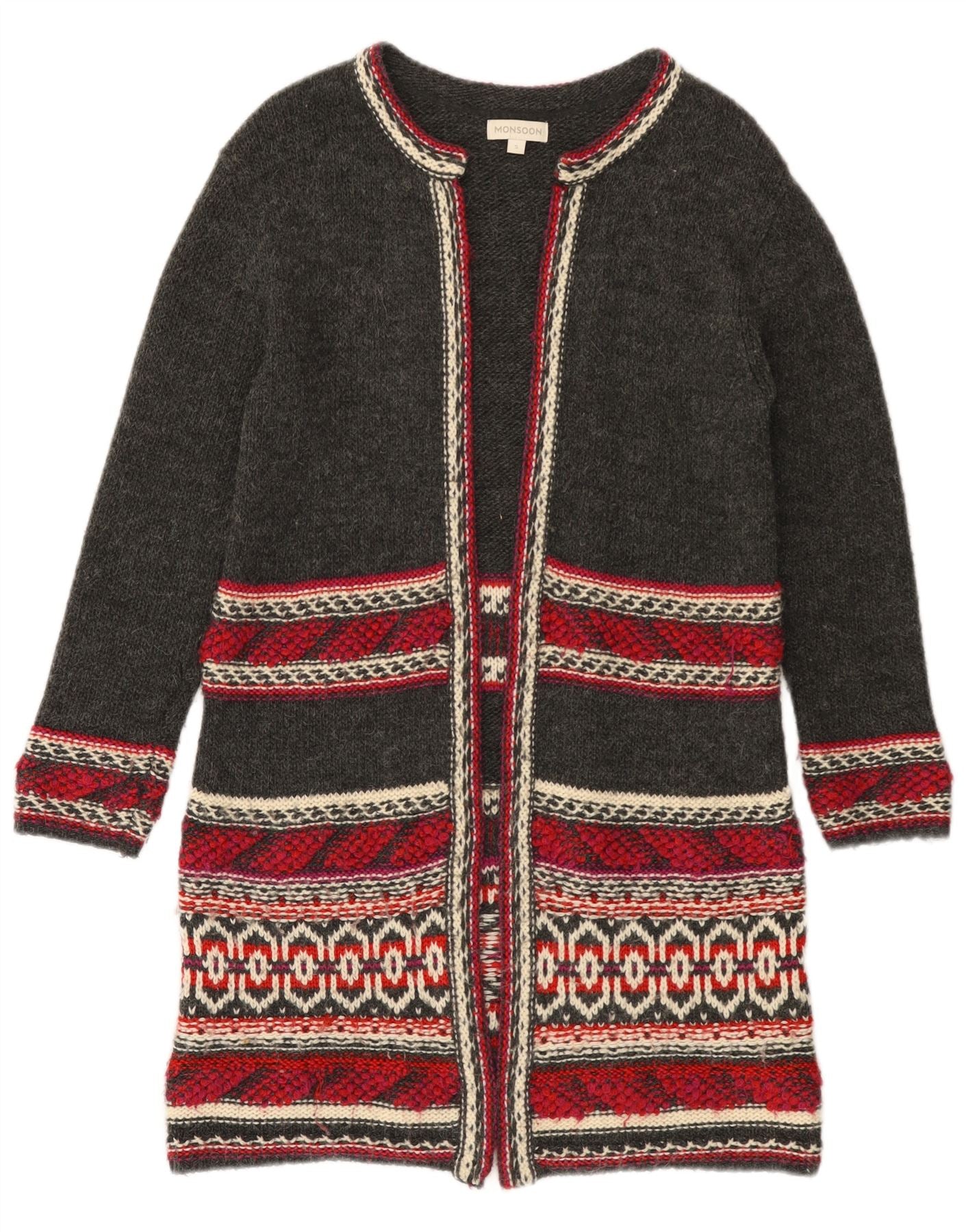 MONSOON Womens Longline Open Cardigan Sweater UK 10 Small Grey Fair Isle