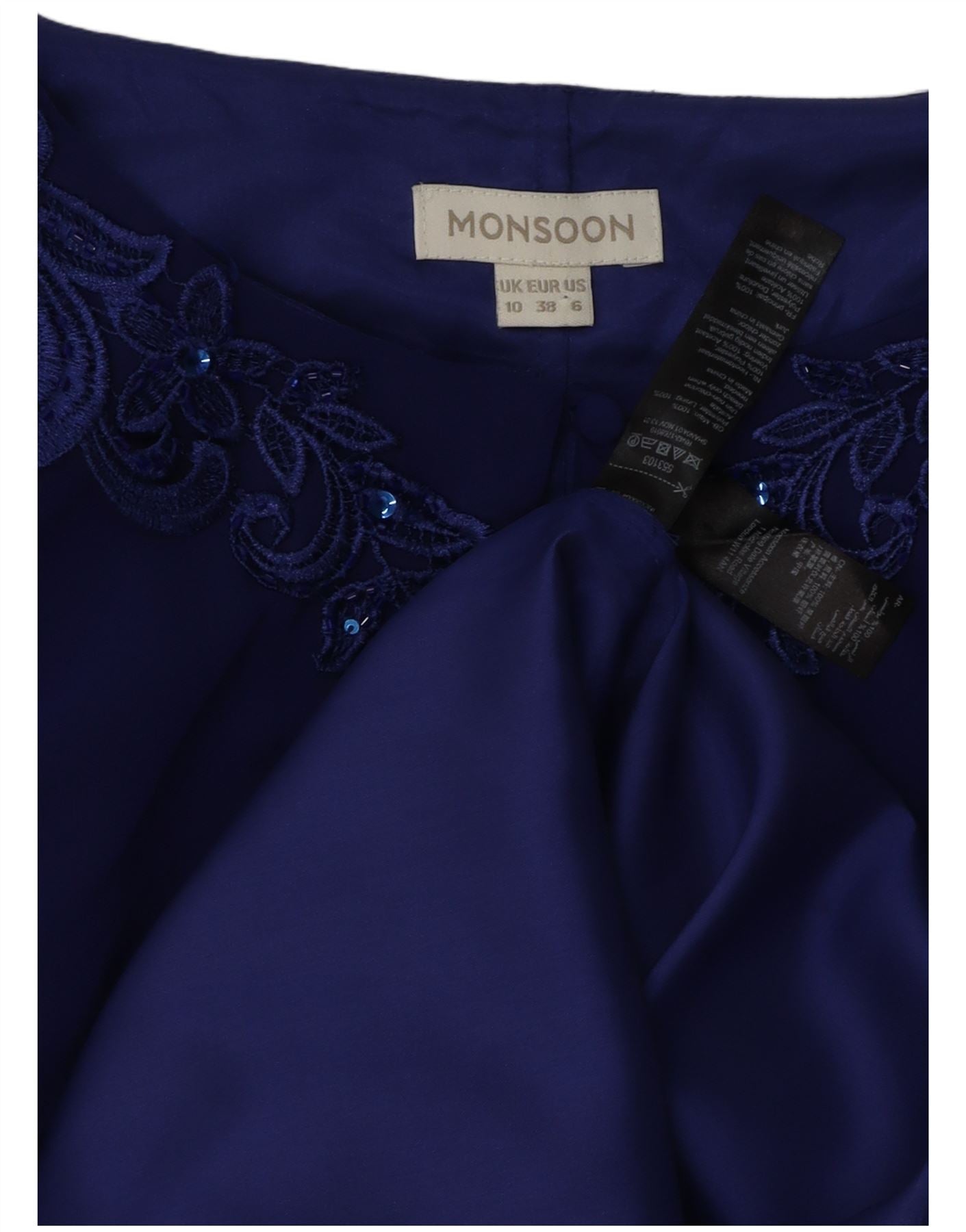 MONSOON Abito a trapezio senza maniche da donna UK 10 Piccolo acetato floreale blu
