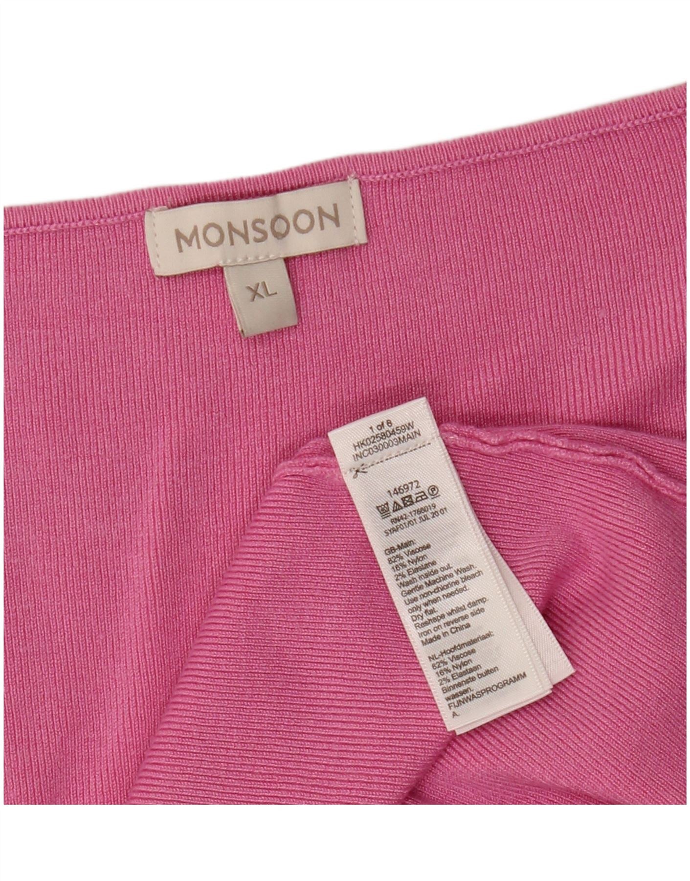 MONSOON Maglione da donna con scollo a V UK 18 XL Viscosa rosa