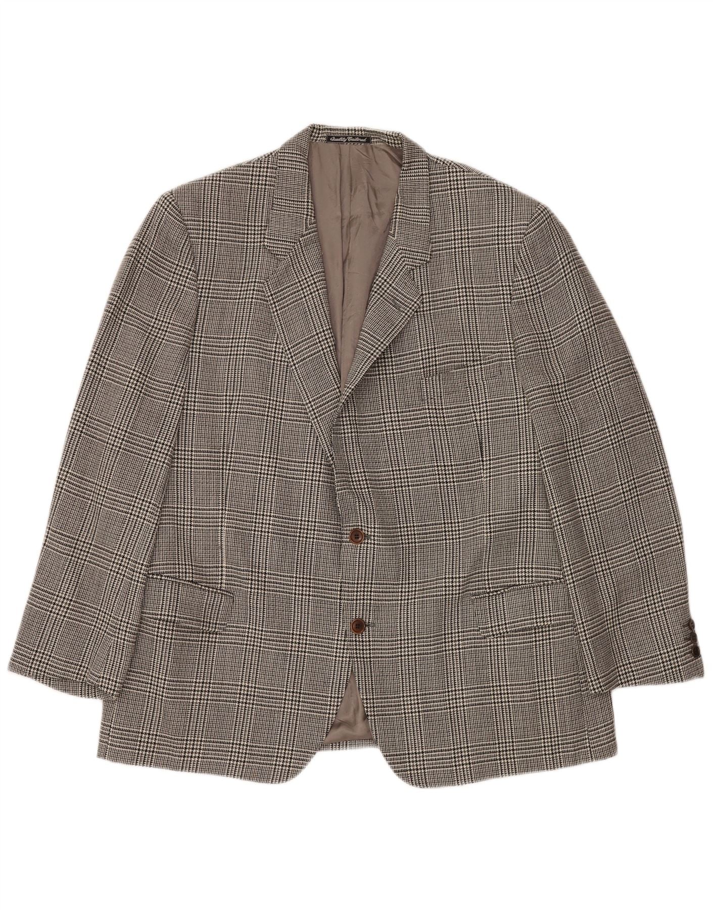 MONTANA Giacca blazer da uomo a 2 bottoni IT 56 3XL Lana vergine pied de poule grigia