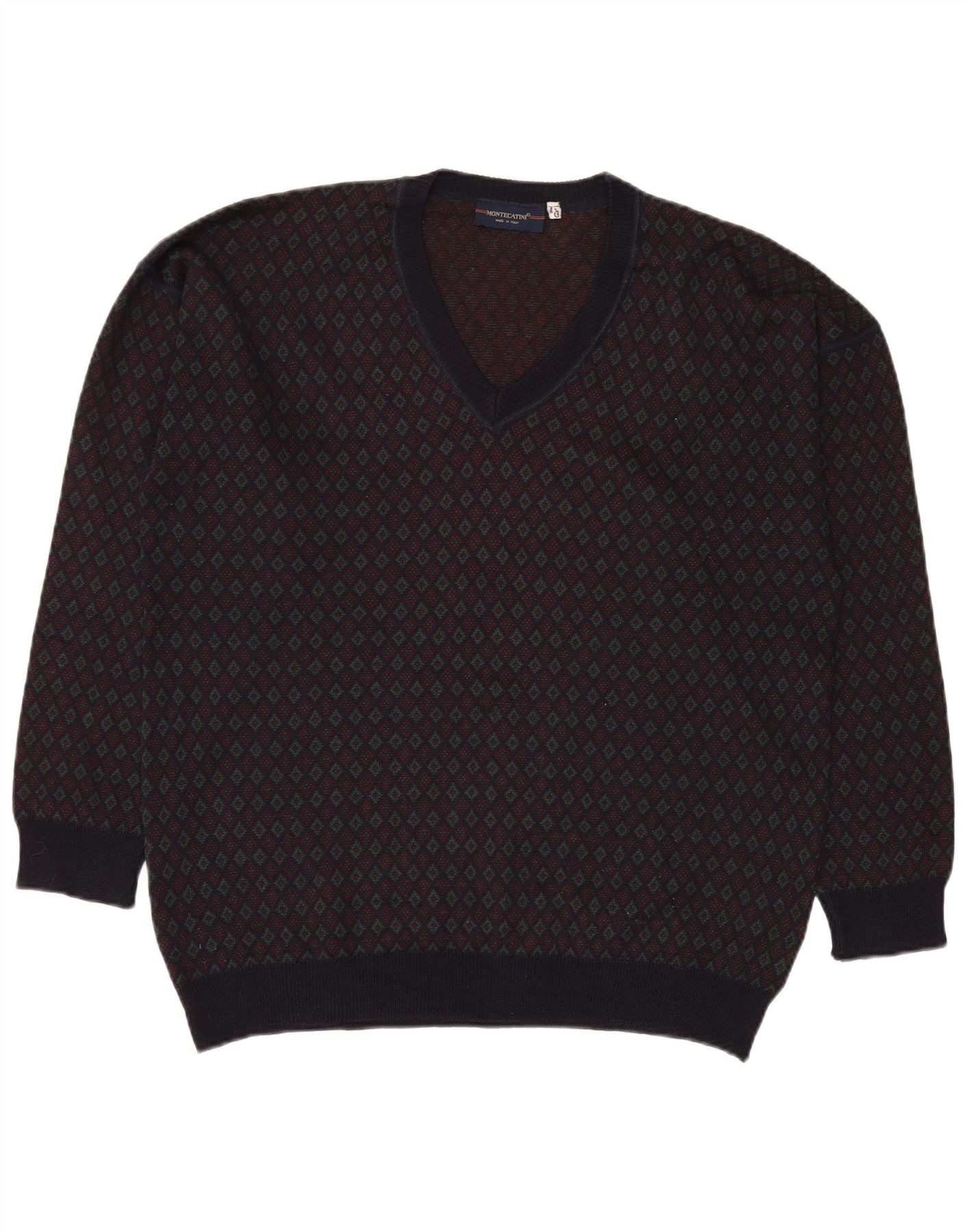 MONTECATINI Maglione da uomo con scollo a V grande geometrico multicolore