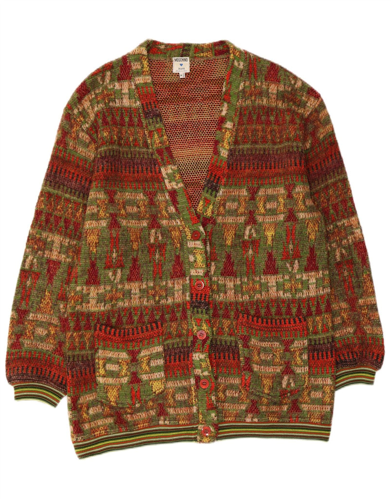 MOSCHINO Womens Cardigan Sweater UK 14 Medium Multicoloured Geometric