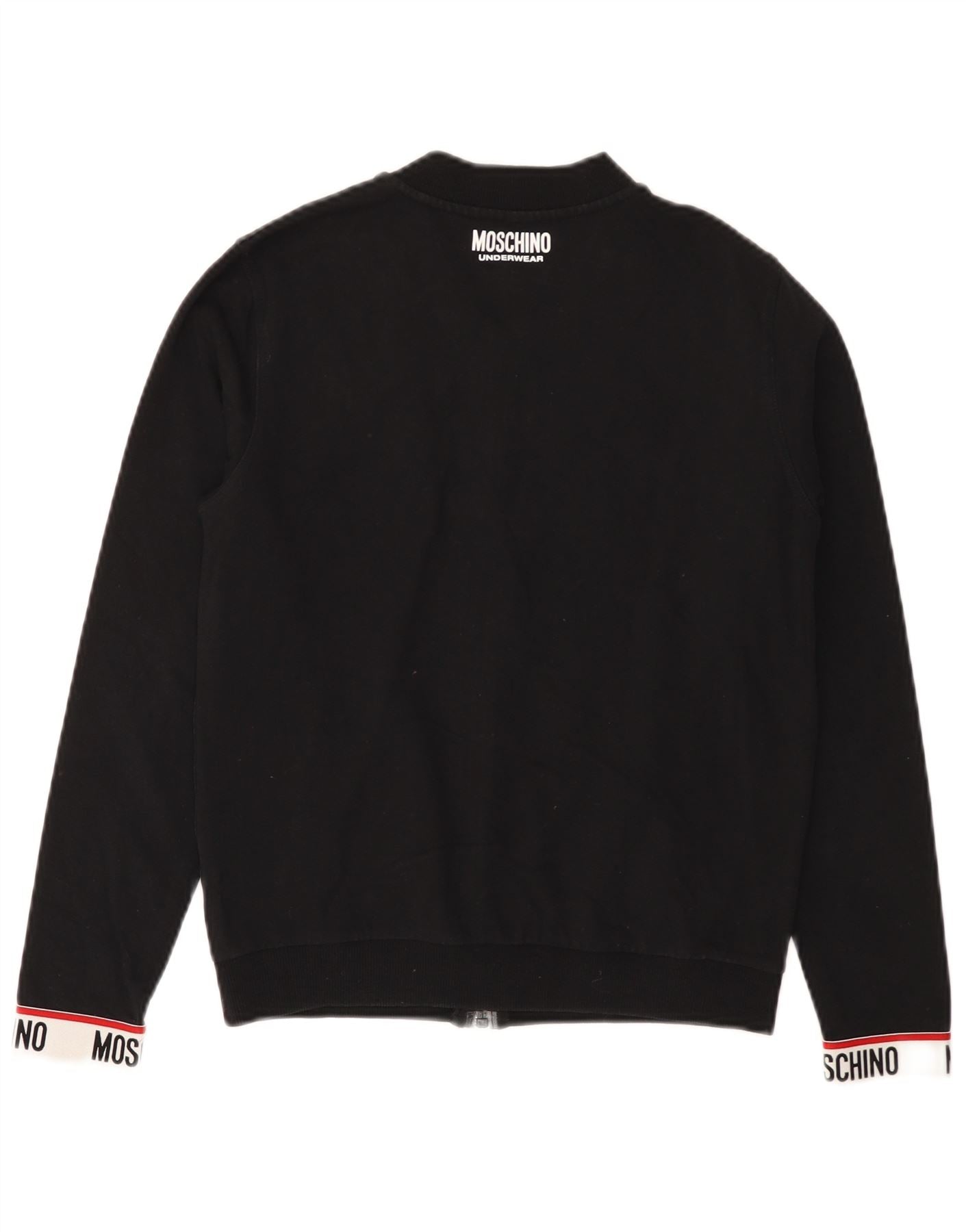 MOSCHINO Womens Graphic Tracksuit Top Jacket UK 12 Medium Black Cotton