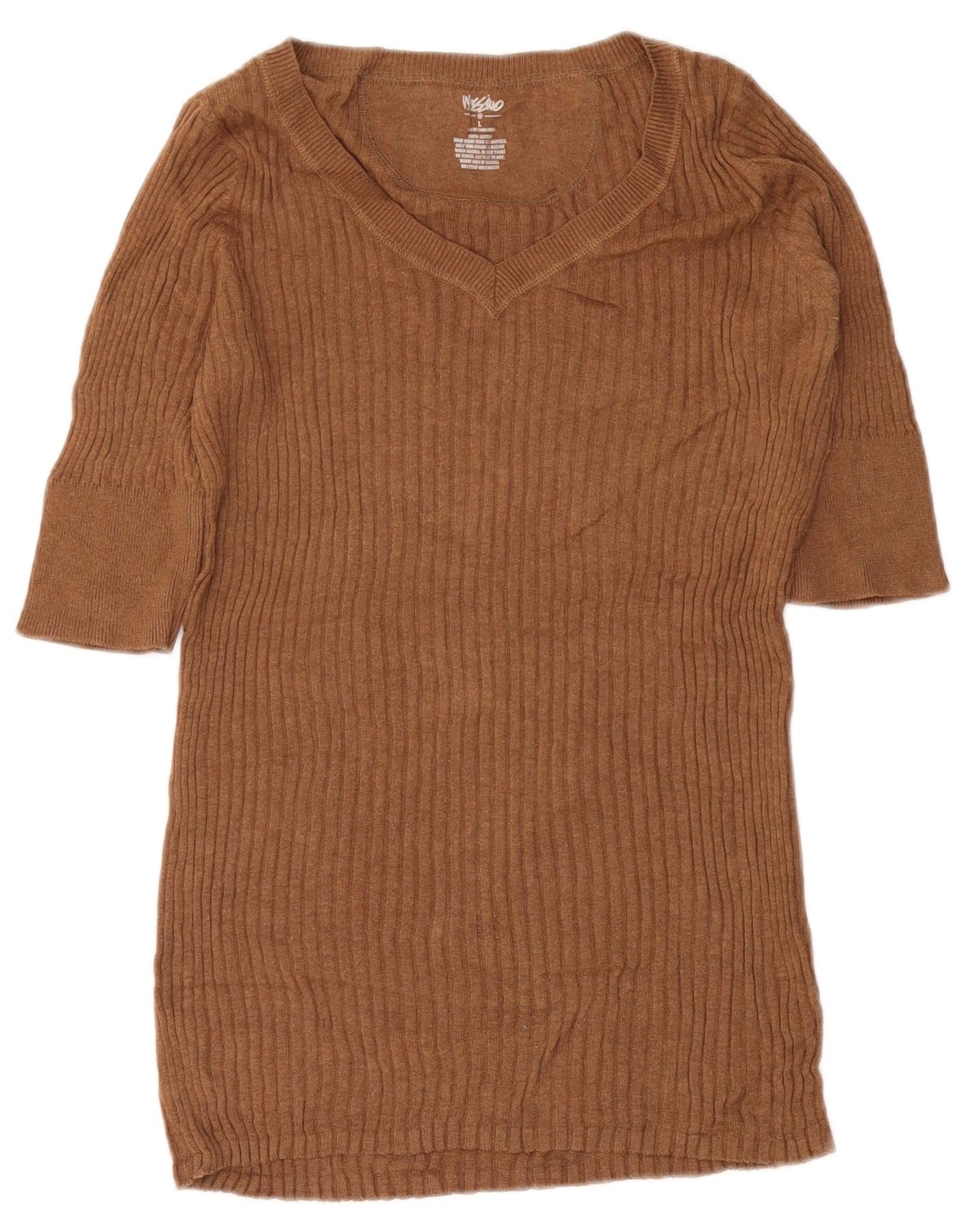 MOSSIMO Maglione da donna a maniche corte con scollo a V UK 14 Grande cotone marrone