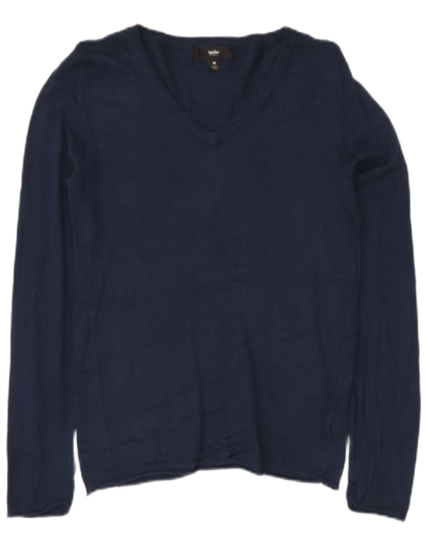 MOSSIMO Maglione da donna con scollo a V UK 12 Nylon blu navy medio
