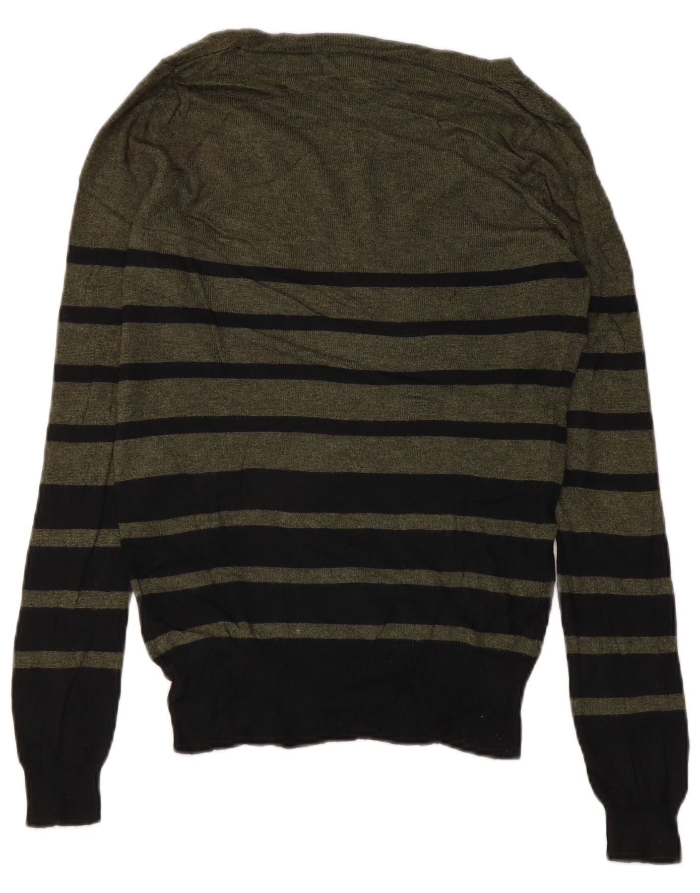 MOSSIMO Maglione da donna con scollo a V UK 6 XS Nylon a righe kaki