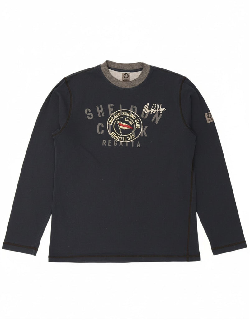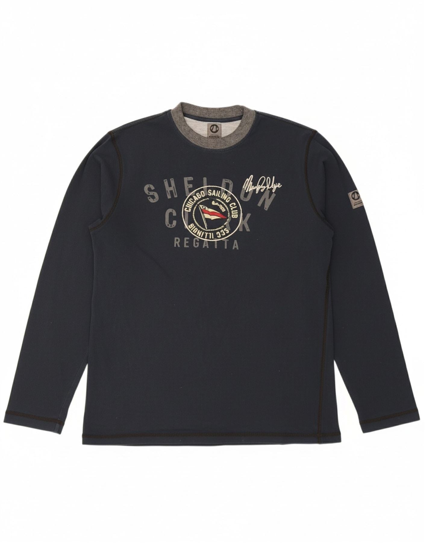 MURPHY & NYE Mens regatta Graphic Top Long Sleeve XL Navy Blue Cotton
