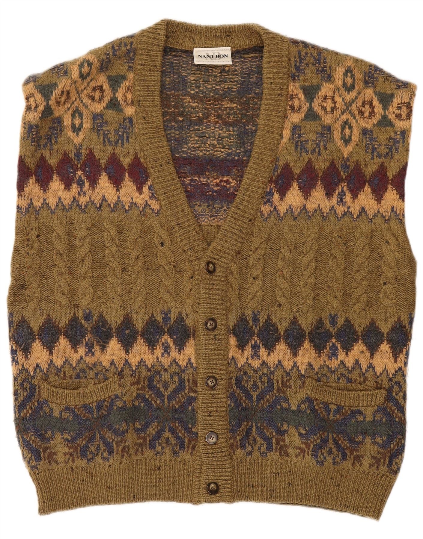 Maglione cardigan senza maniche da uomo NANI BON IT 52 Large Khaki Fair Isle