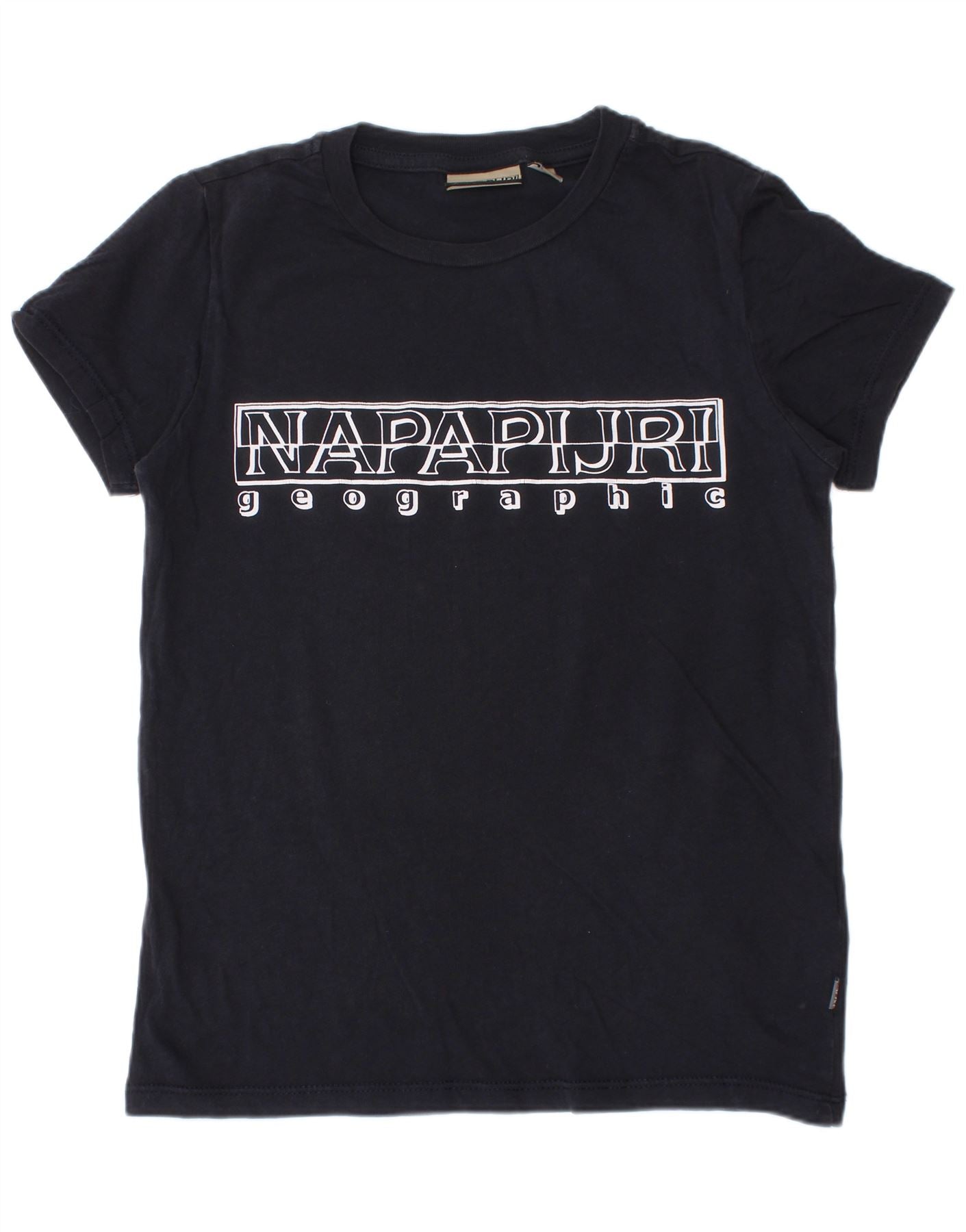 Maglietta NAPAPIJRI per ragazzi con grafica geografica, 7-8 anni, in cotone blu navy