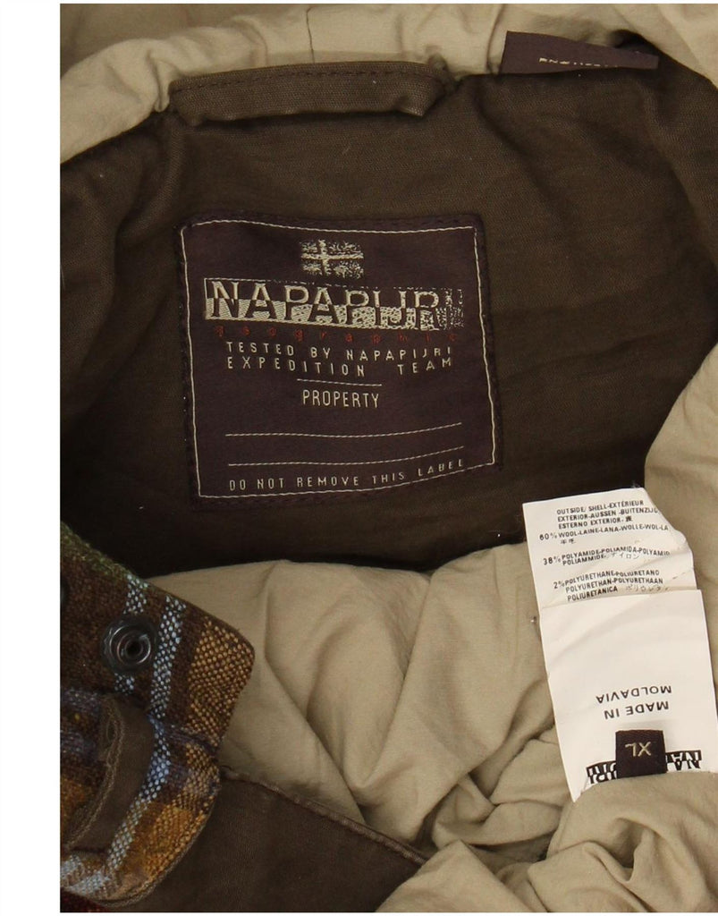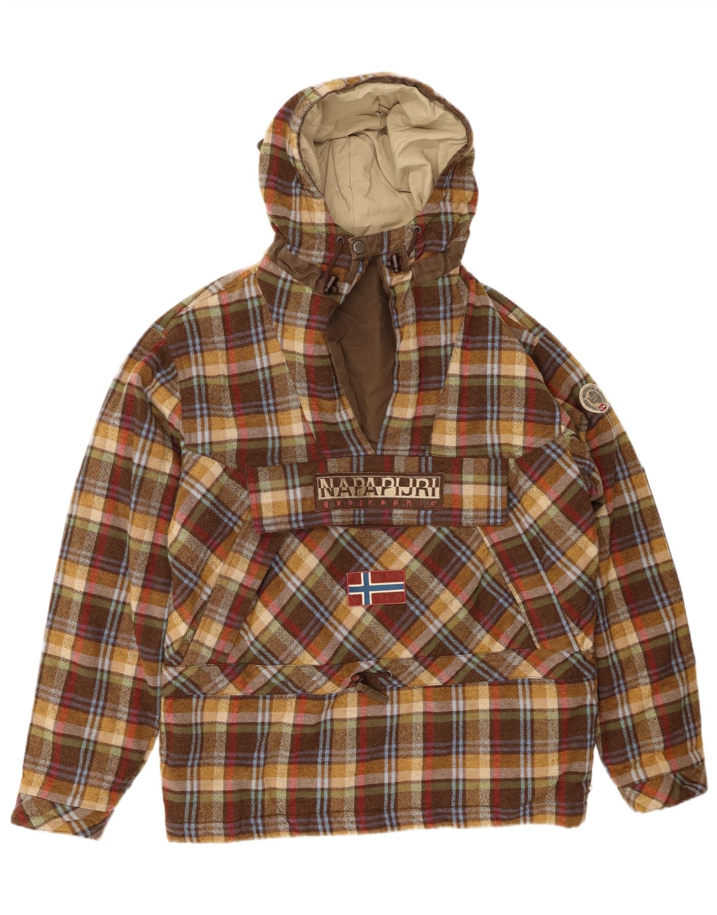 NAPAPIJRI Mens Graphic Hooded Anorak Jacket UK 42 XL Brown Check Wool