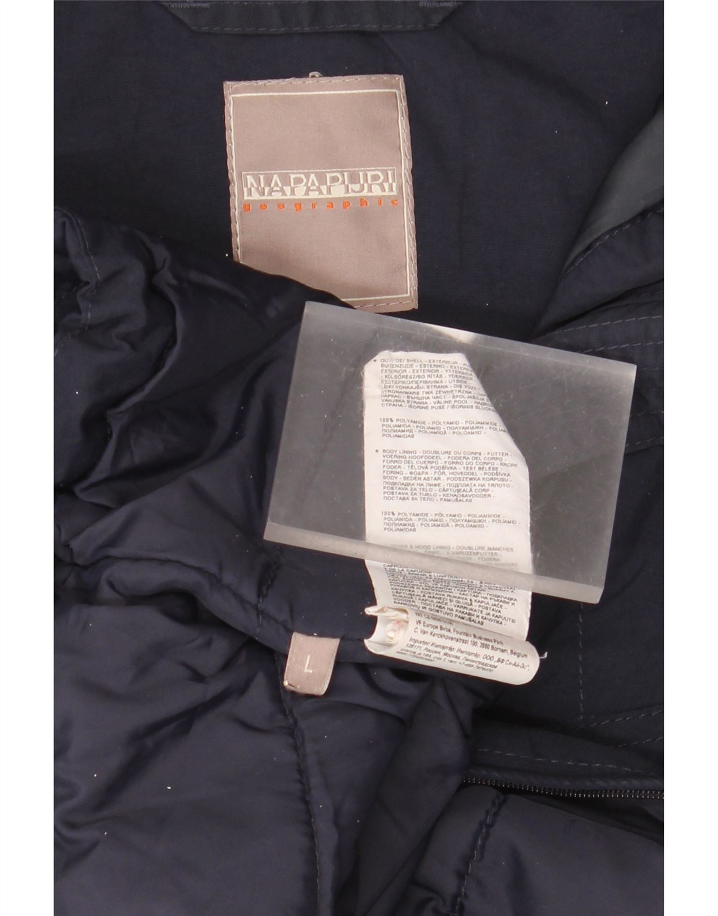 Giacca anorak grafica da uomo con cappuccio Napapijri UK 40 Large blu navy in poliammide