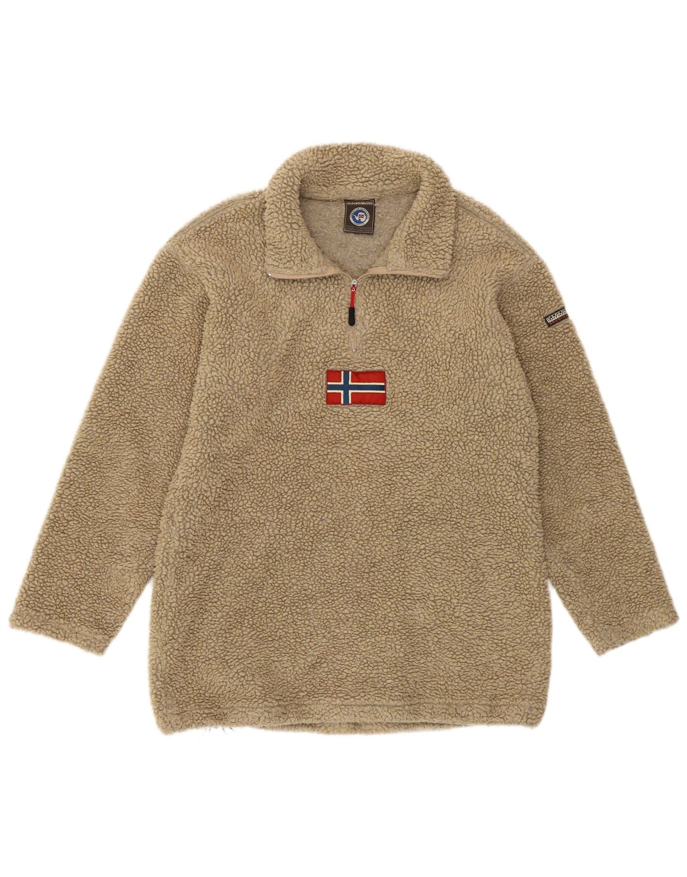 Maglione da donna in pile con collo con zip e grafica Napapijri, grande, in poliacrilico beige