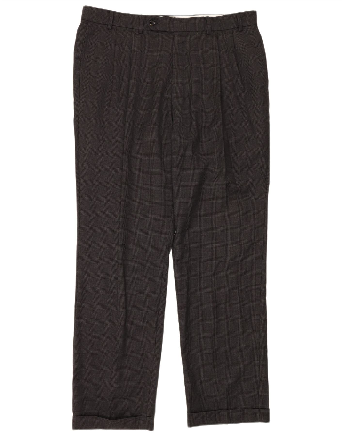 Pantaloni da abito da uomo NAUTICA con pegging W38 L32 lana a quadri grigi