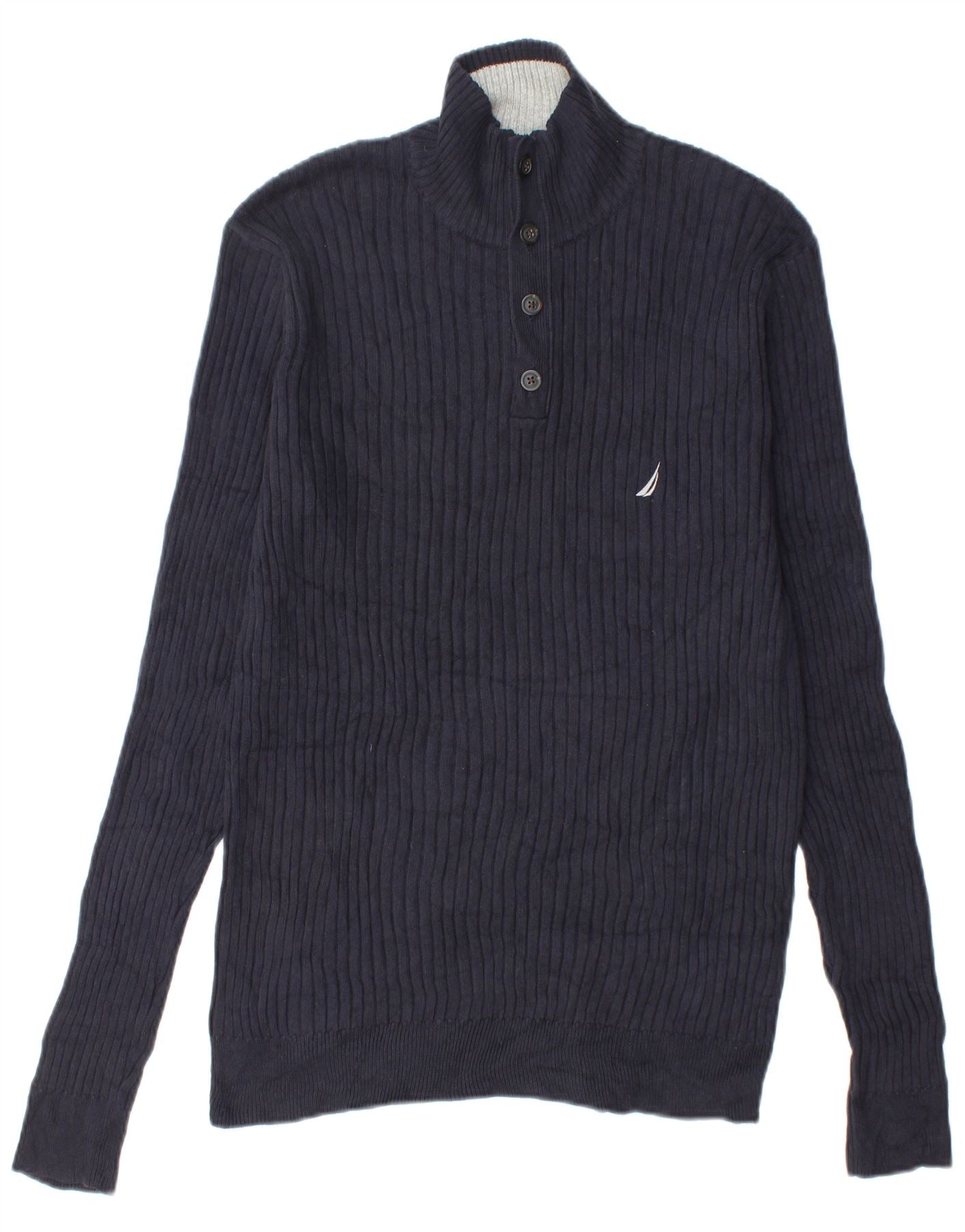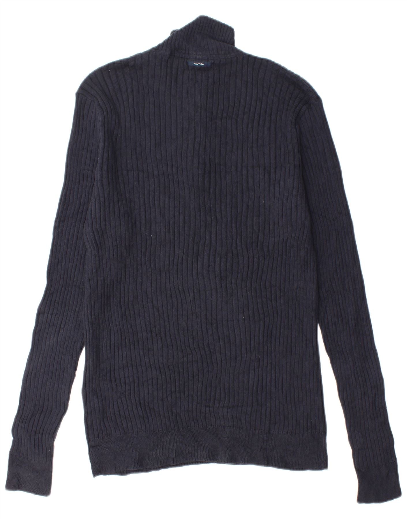 NAUTICA Maglione da uomo con zip e collo grande in cotone blu navy