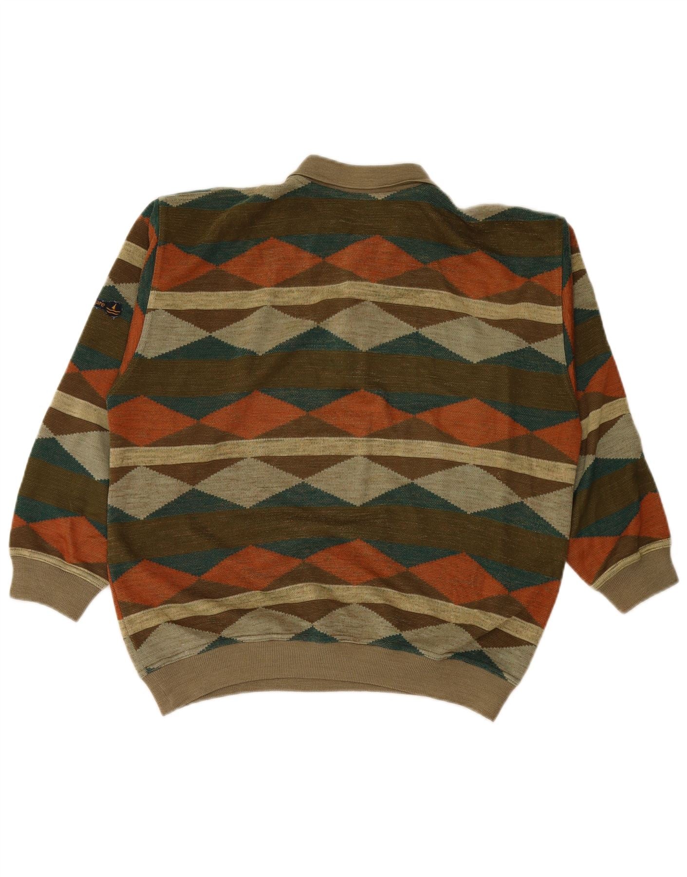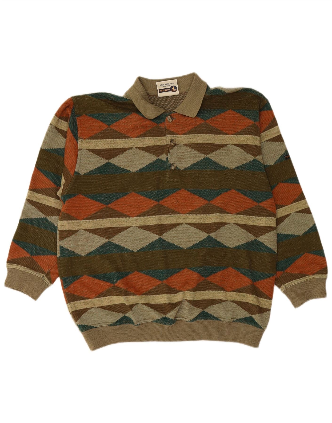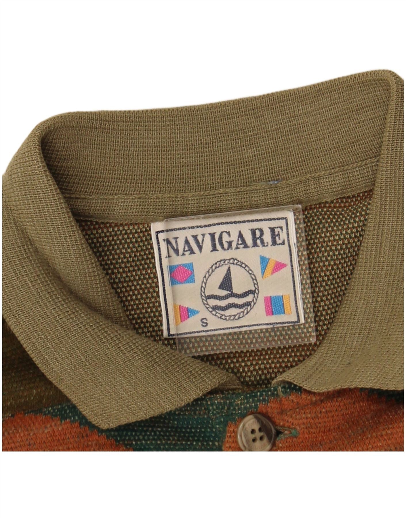 NAVIGARE Mens Polo Neck Jumper Sweater Small Khaki Argyle/Diamond