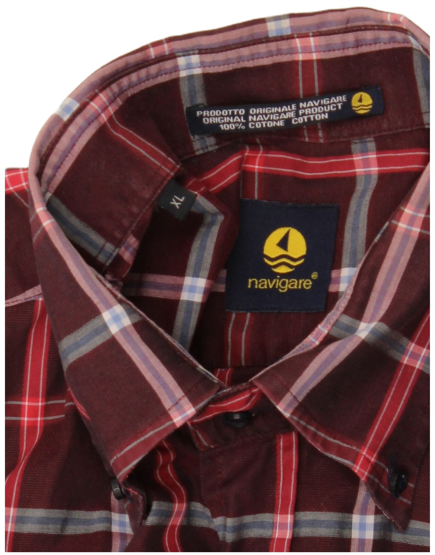 NAVIGARE Camicia a maniche corte da uomo XL in cotone a quadri bordeaux