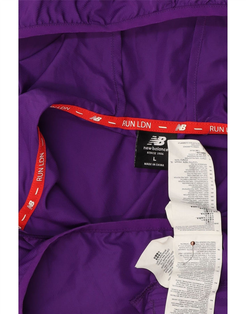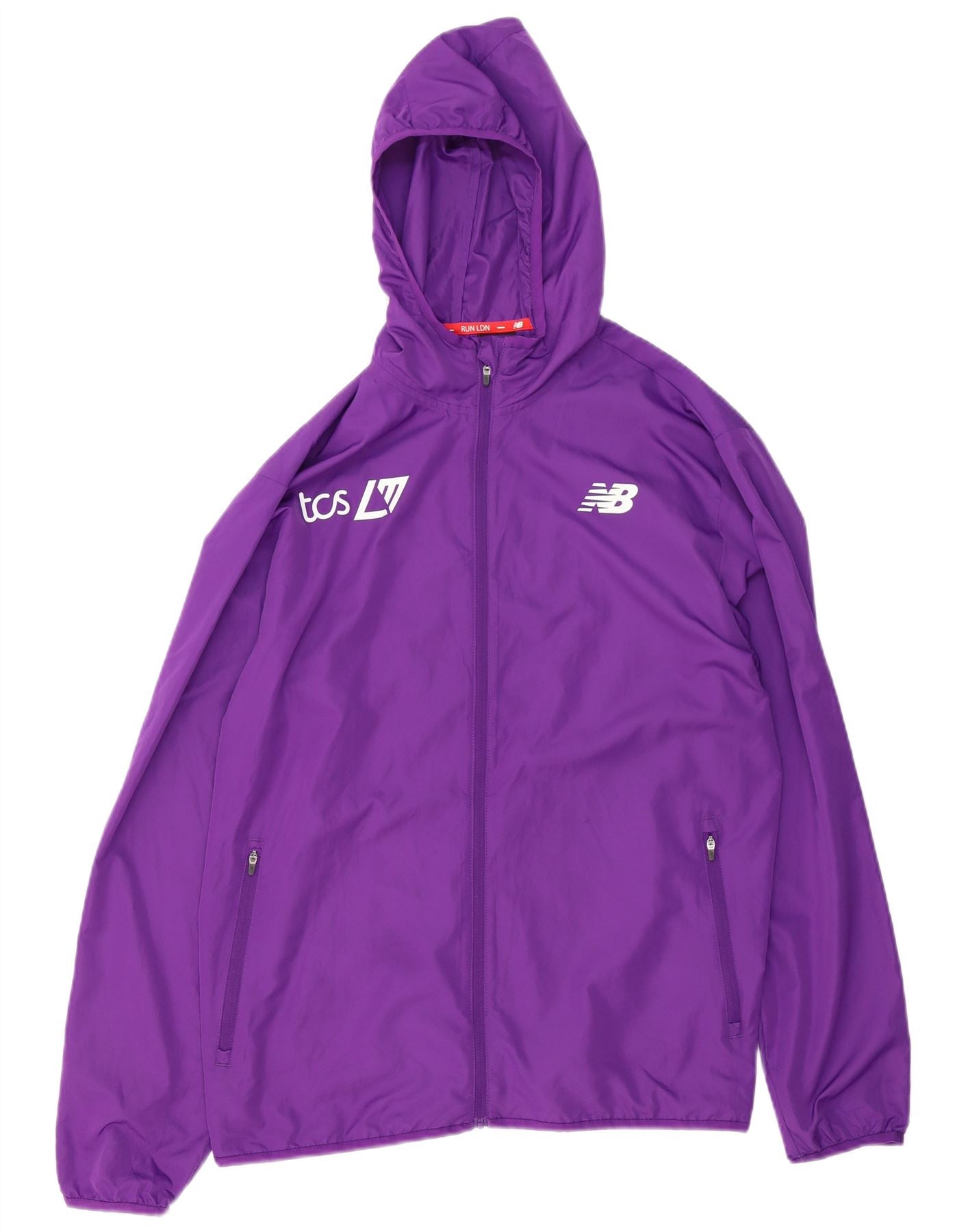 NEW BALANCE Mens Graphic Hooded Rain Jacket UK 40 Large Purple Polyester
