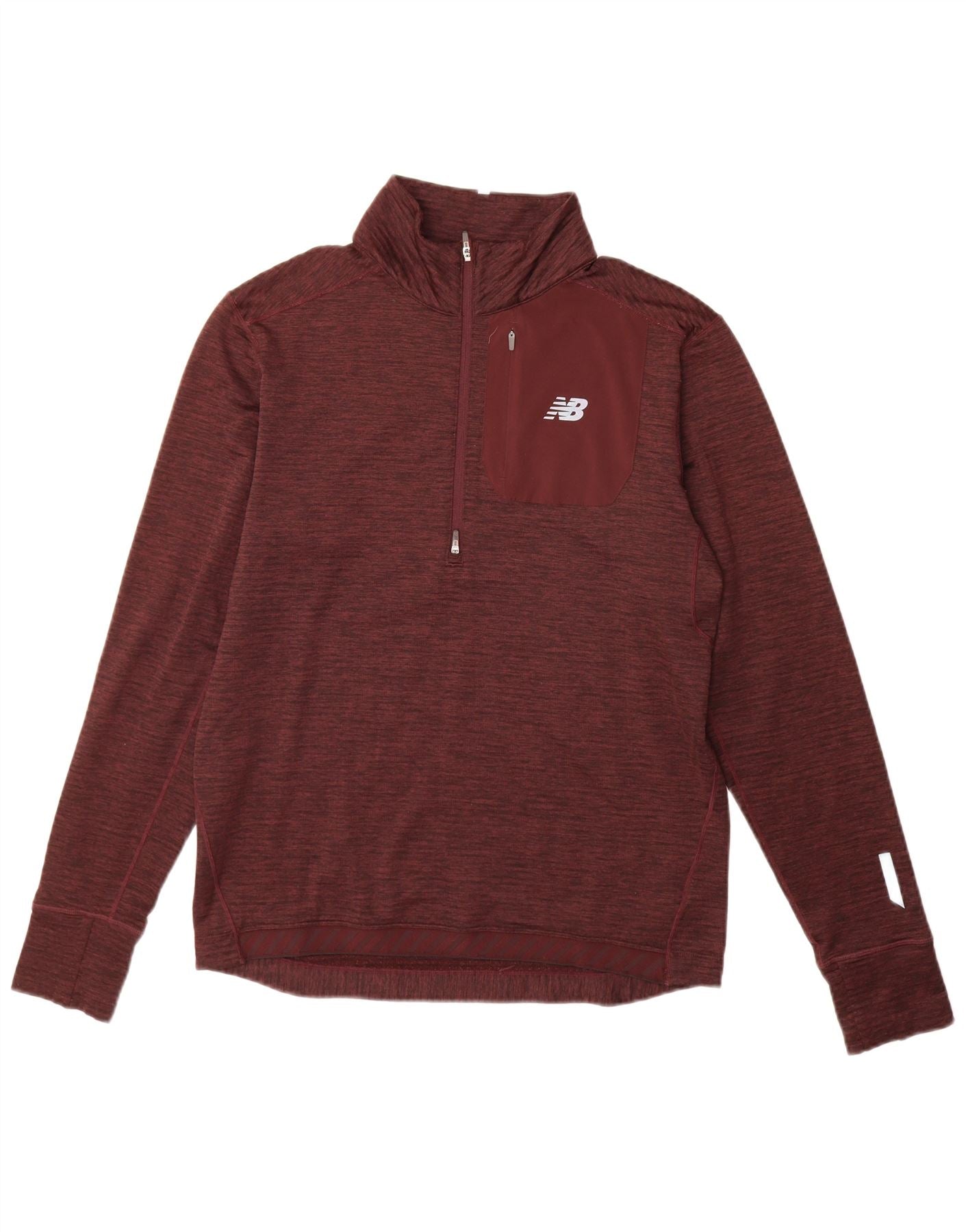 NEW BALANCE Mens Zip Neck Pullover Tracksuit Top Medium Burgundy Polyester