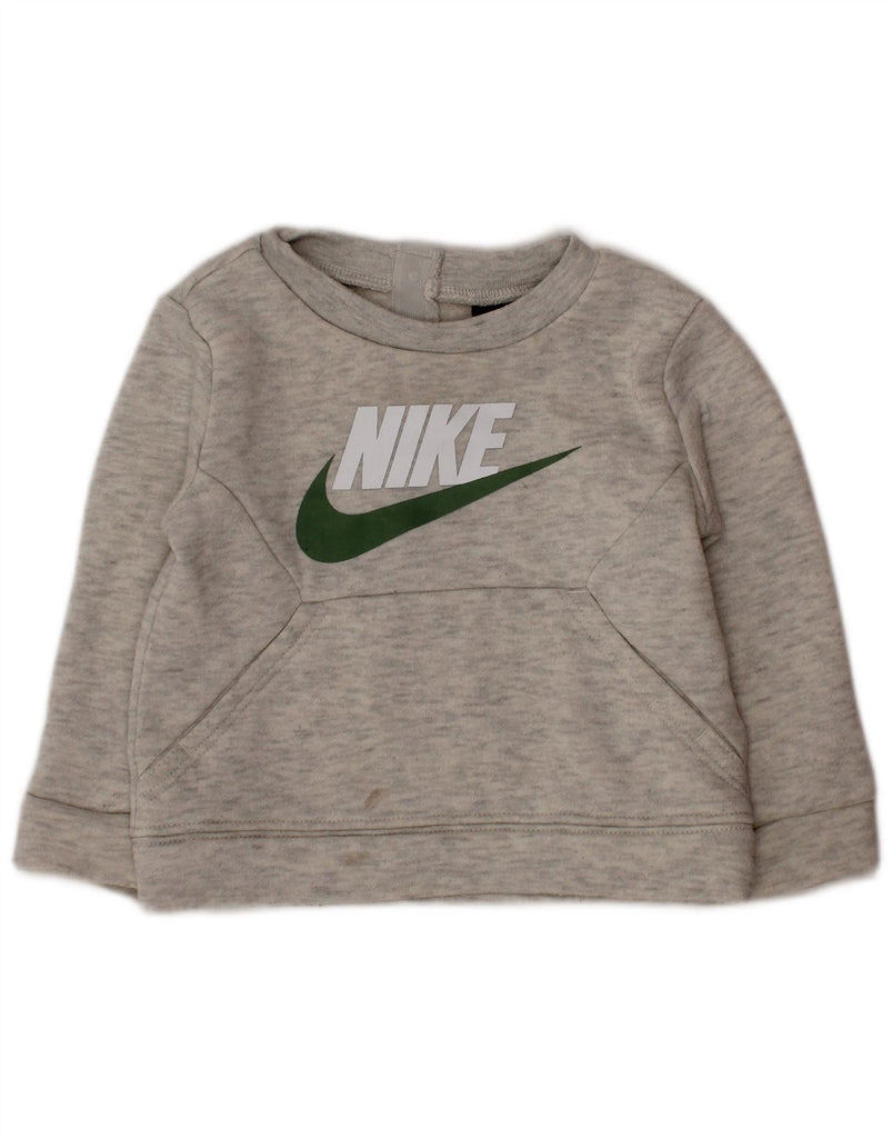 NIKE Baby Girls Graphic Sweatshirt Jumper 12-18 Months Grey Flecked Cotton
