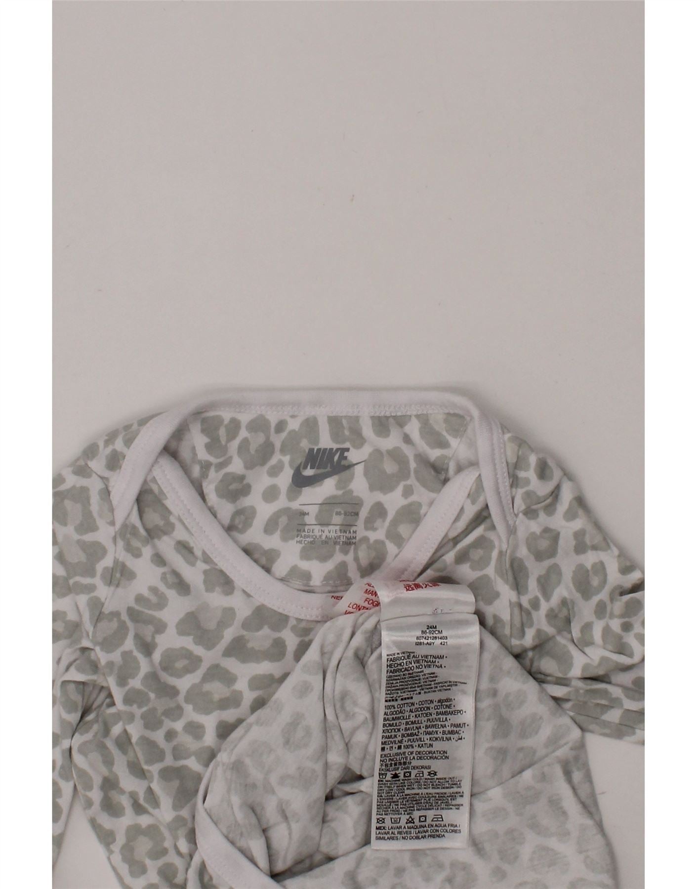 NIKE Baby Girls Long Sleeve Bodysuit 18-24 Months Grey Animal Print Cotton