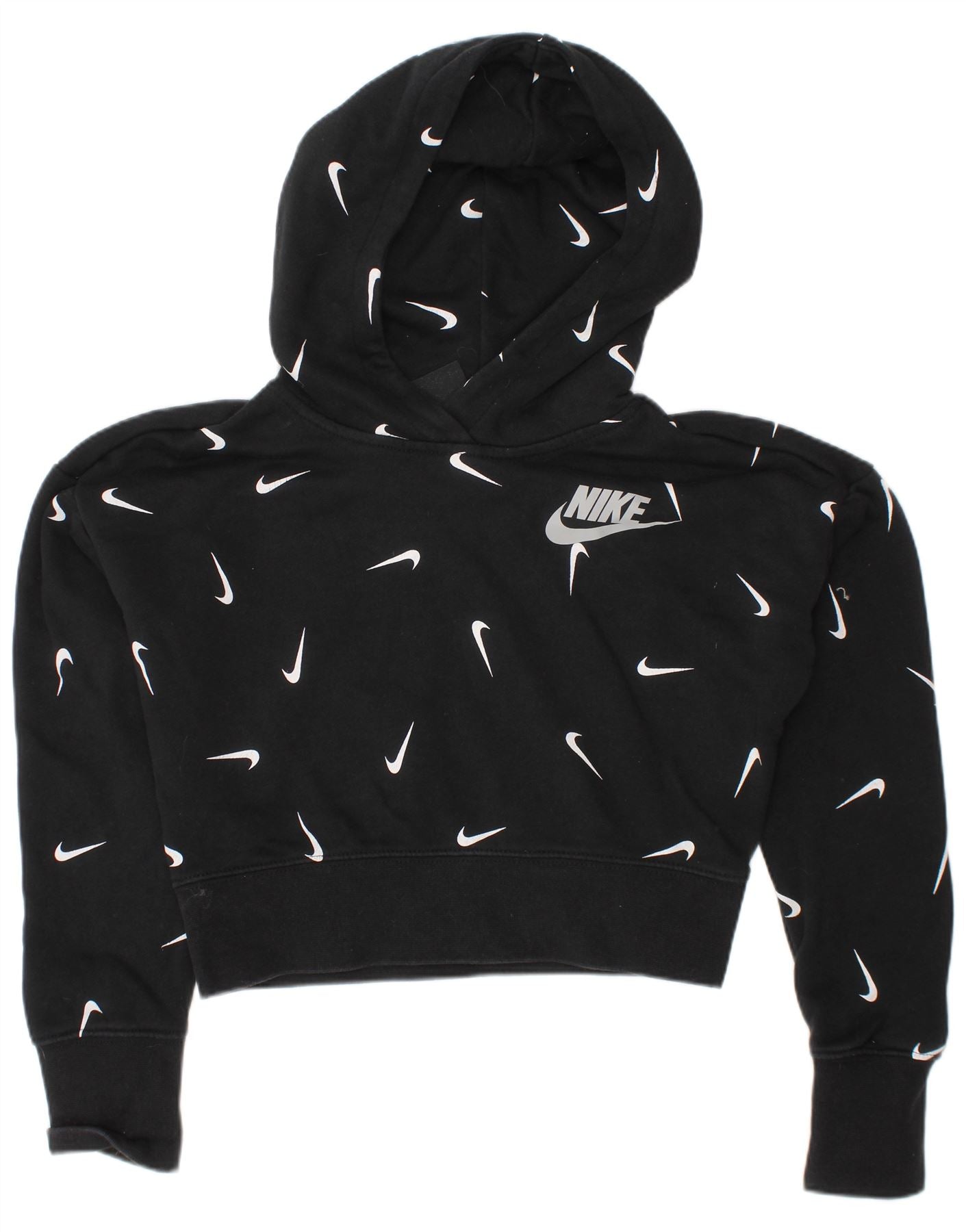 Felpa con cappuccio NIKE per ragazze con grafica standard fit, 8-9 anni, piccola, in cotone nero
