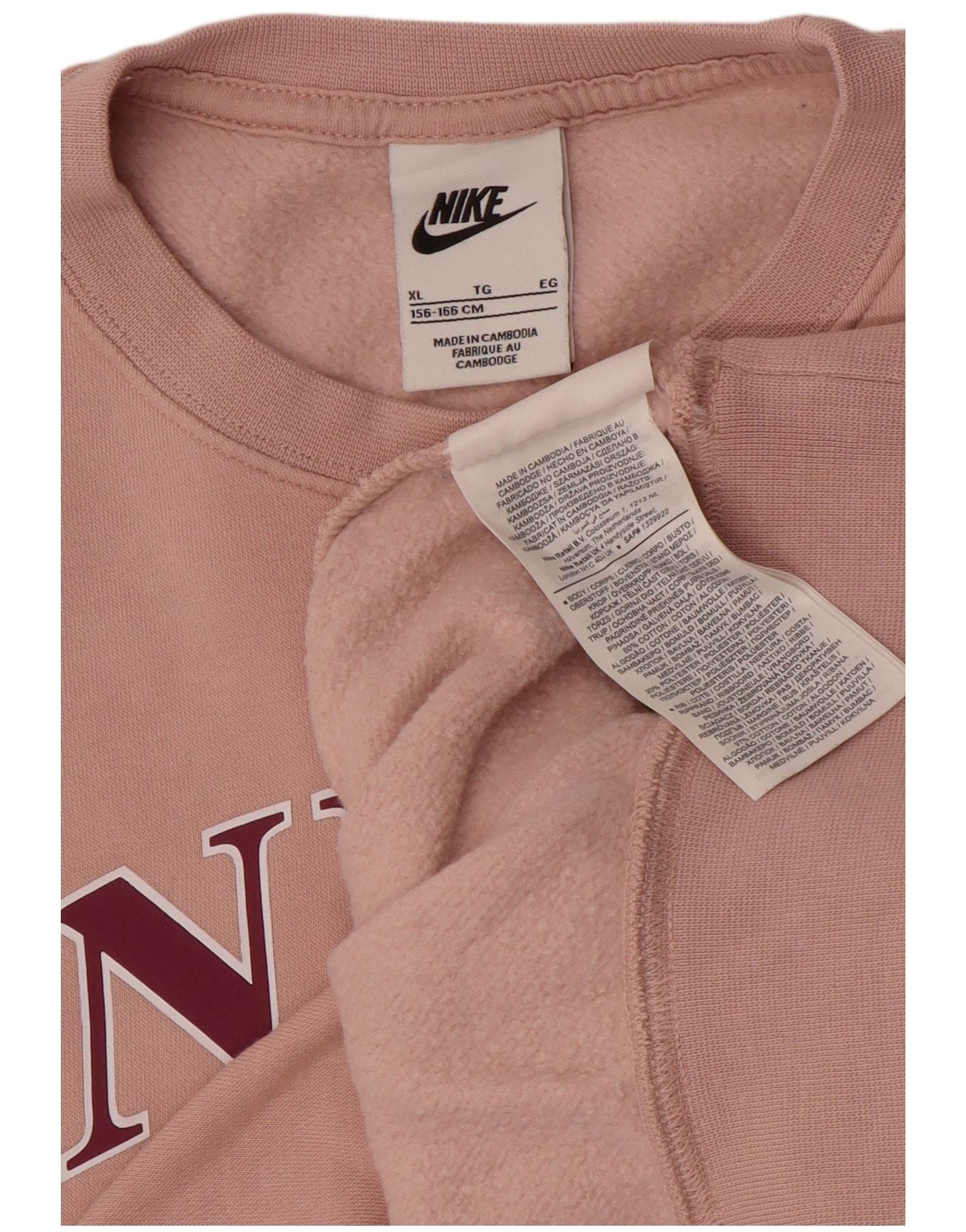 Felpa con grafica oversize NIKE per ragazze 13-14 anni XL in cotone rosa