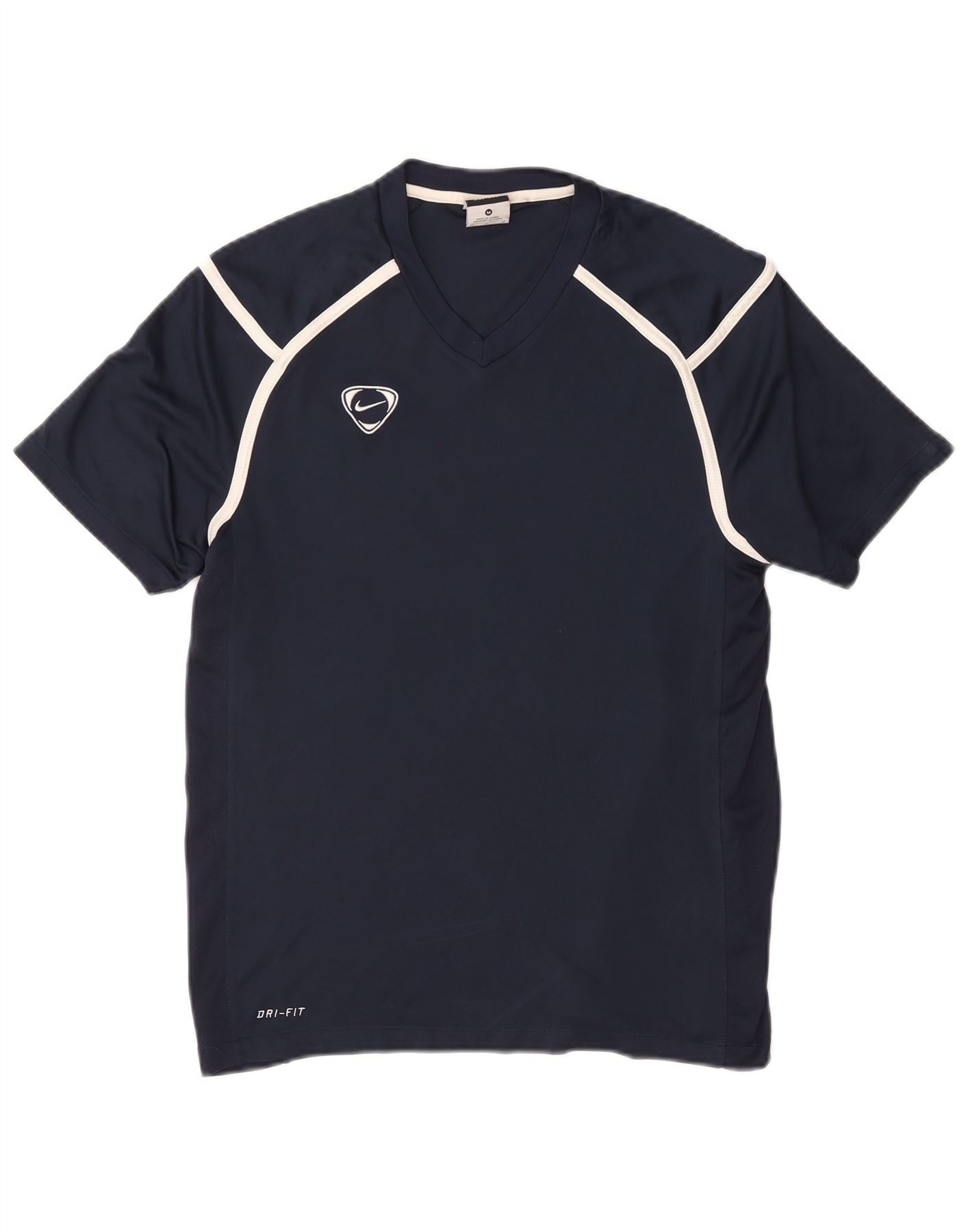 NIKE Mens Dri Fit T-Shirt Top Medium Navy Blue Colourblock Polyester