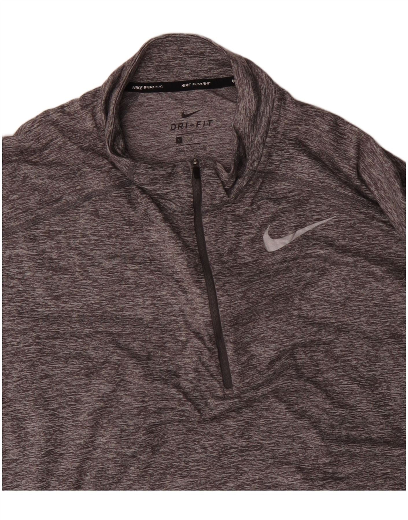 NIKE Top da tuta pullover con zip e collo Dri Fit da uomo, grande, grigio screziato