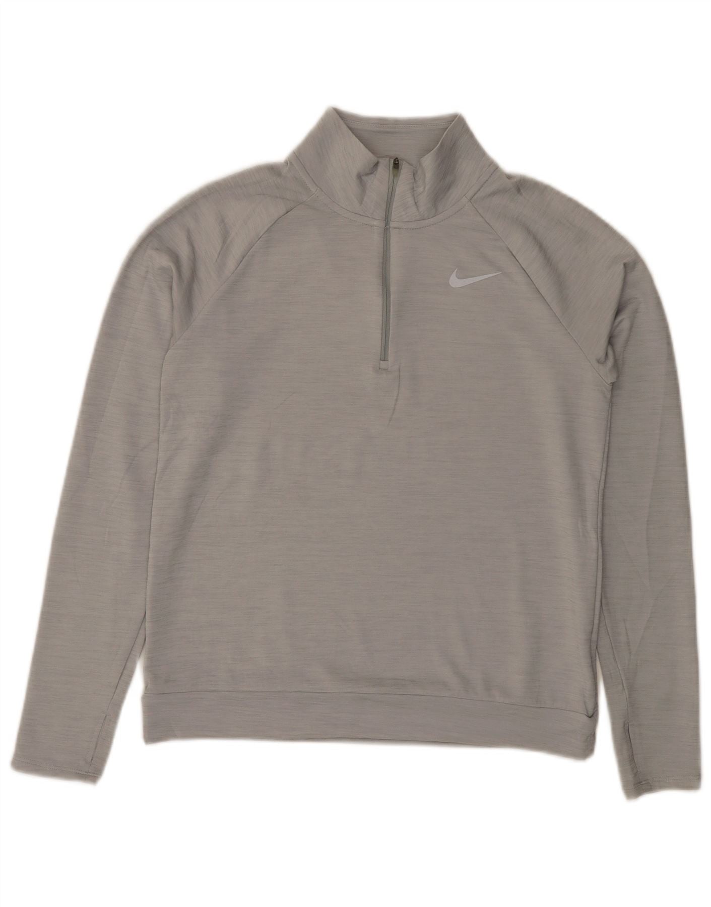 NIKE Top da tuta pullover con zip e collo Dri Fit da uomo piccolo grigio screziato