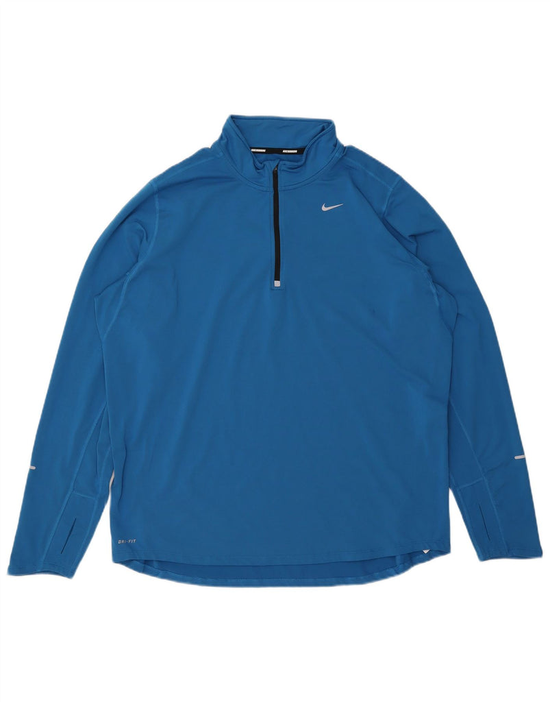 NIKE Top da tuta pullover con zip e collo Dri Fit da uomo XL blu poliestere