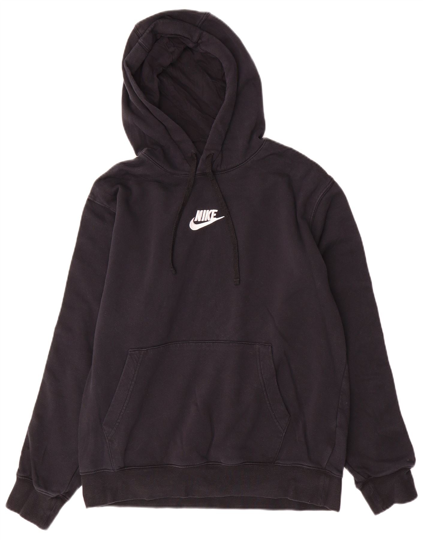 - Descrizione dell'IA: Questo maglione con cappuccio da uomo Nike è realizzato in morbido tessuto misto cotone nero. Presenta una comoda vestibilità regolare e un classico design con cappuccio e coulisse. La parte anteriore mostra un prominente logo Nike. Finitura maniche lunghe con polsini a coste. Una pratica tasca a marsupio aggiunge funzionalità. I dettagli del nastro con marchio corrono lungo le maniche, migliorandone il fascino atletico.