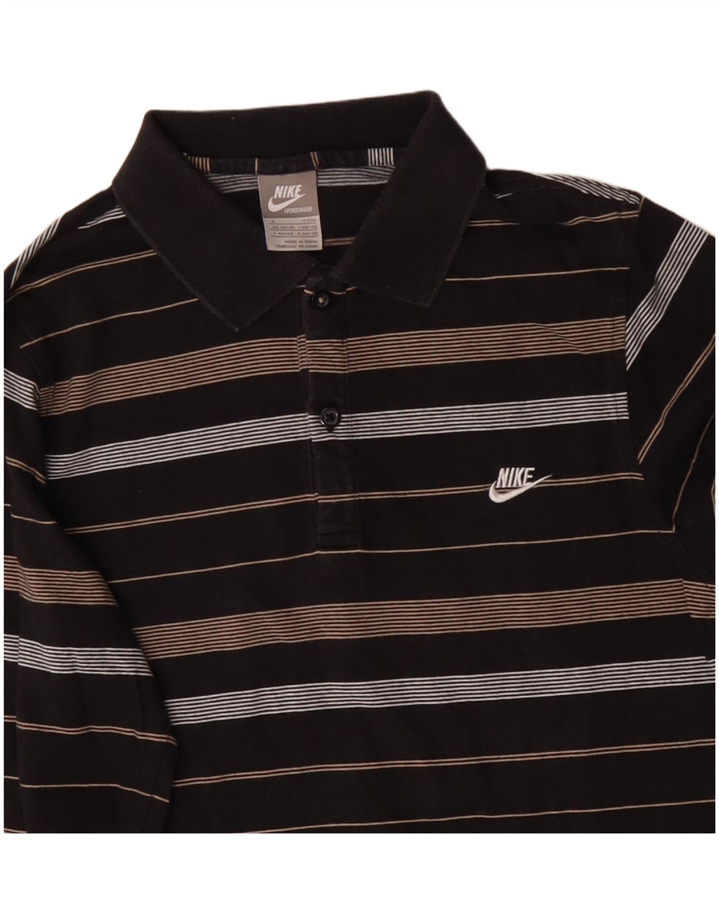 Polo NIKE da uomo a maniche lunghe piccola in cotone a righe nere