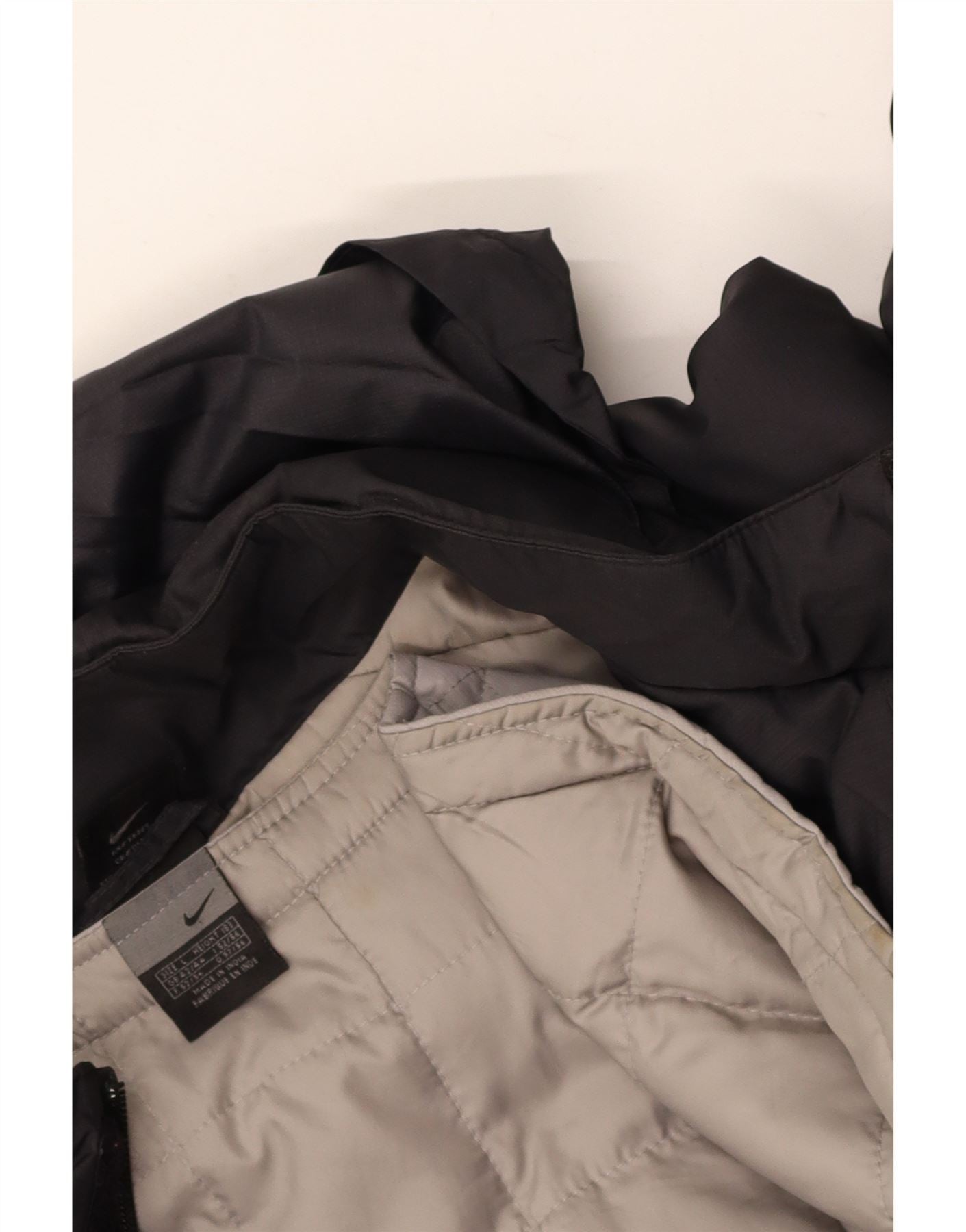 - AI Description: This Nike mens waterproof jacket is crafted from black polyester, featuring a woven and quilted finish. It boasts a high neck and long sleeves, offering comprehensive coverage. The regular fit ensures comfortable wear. A full zip closure provides practicality. It is hooded, padded, and windproof, making it ideal for outdoor activities. Subtle logo detailing completes the design.